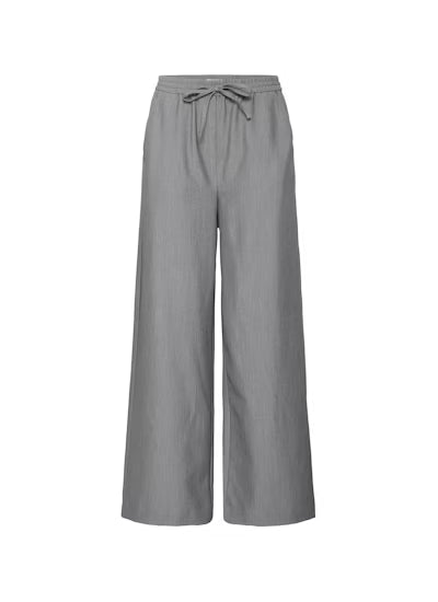 The Danta trouser is a modern wide-leg pant designed in a versatile soft gray tone. Tailored with a high-rise waist and clean front, it creates a polished and elongating silhouette. The wide leg flows with ease, giving the pants a refined drape that moves beautifully while maintaining structure. Side pockets add practicality without disrupting the sleek design, and subtle pleating at the waist adds just the right amount of detail. Sophisticated yet effortless, these trousers can be styled with a crisp blouse for work, paired with a fitted knit and sneakers for a chic daytime look, or dressed up with heels and a blazer for evening sophistication.