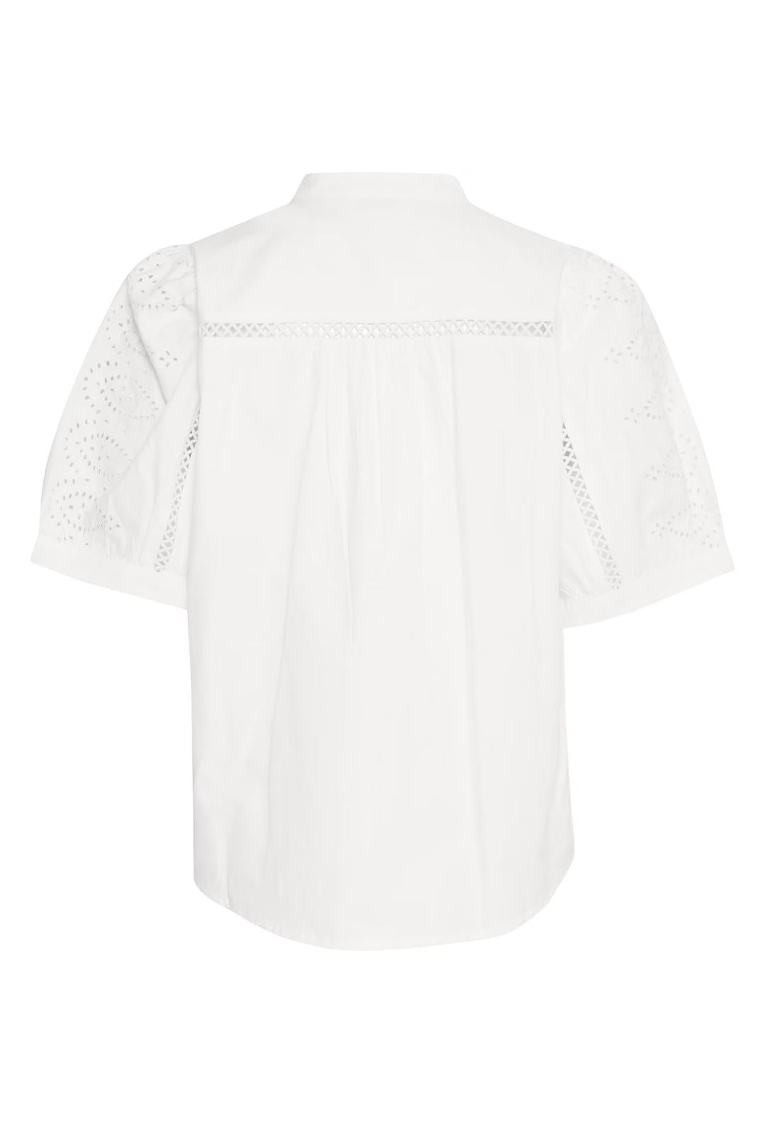 A beautiful button up with an eyelet pattern and crochet insert on the sleeves. A must-have summer shirt to style with skirts, trousers, jeans or shorts!