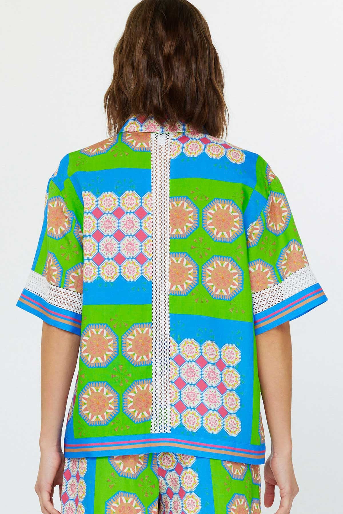 You will love the feel of this tencel/linen blend shirt. Made in a textured fabric with a crochet lace inset for added interest. Style with the matching shorts for a super cute matching set that will give you endless looks worn separately.