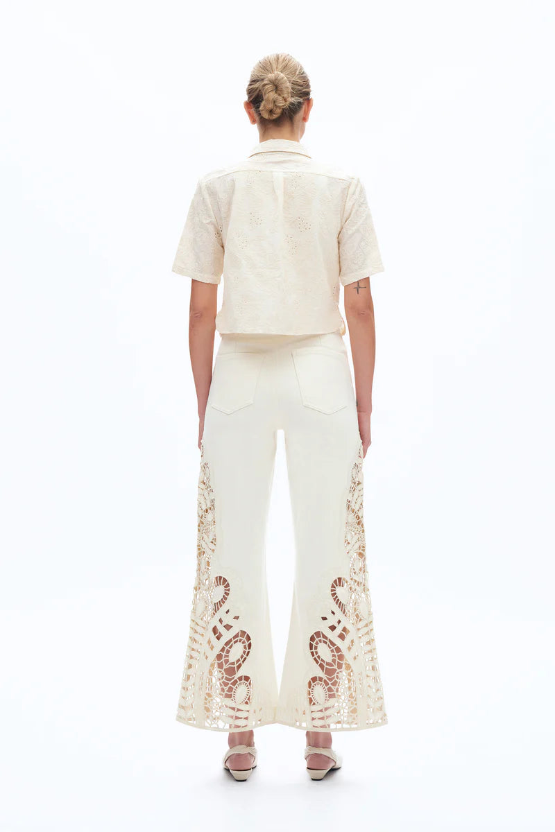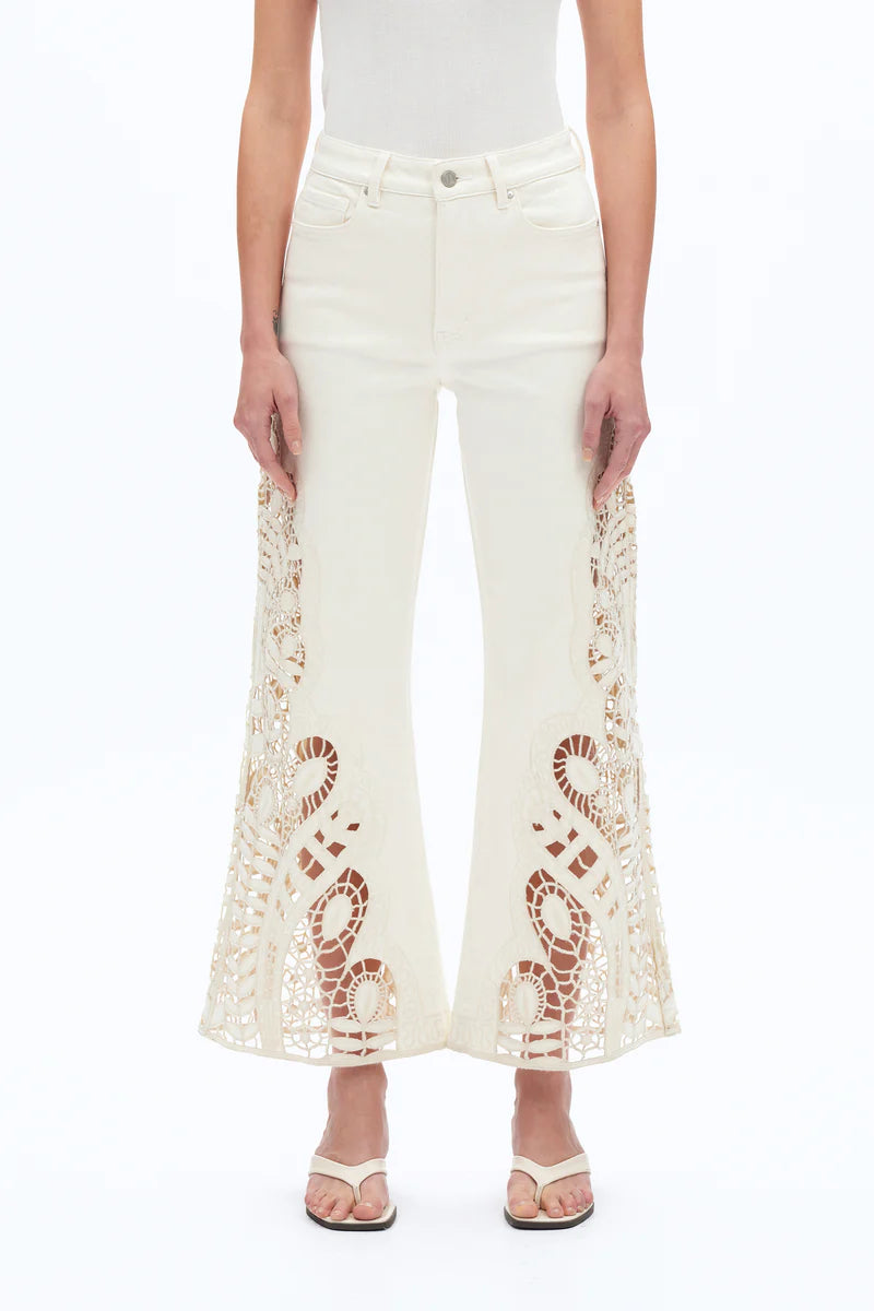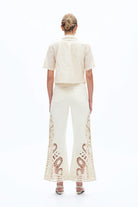 Bayeas Beige Embroidered Wide Leg Denim