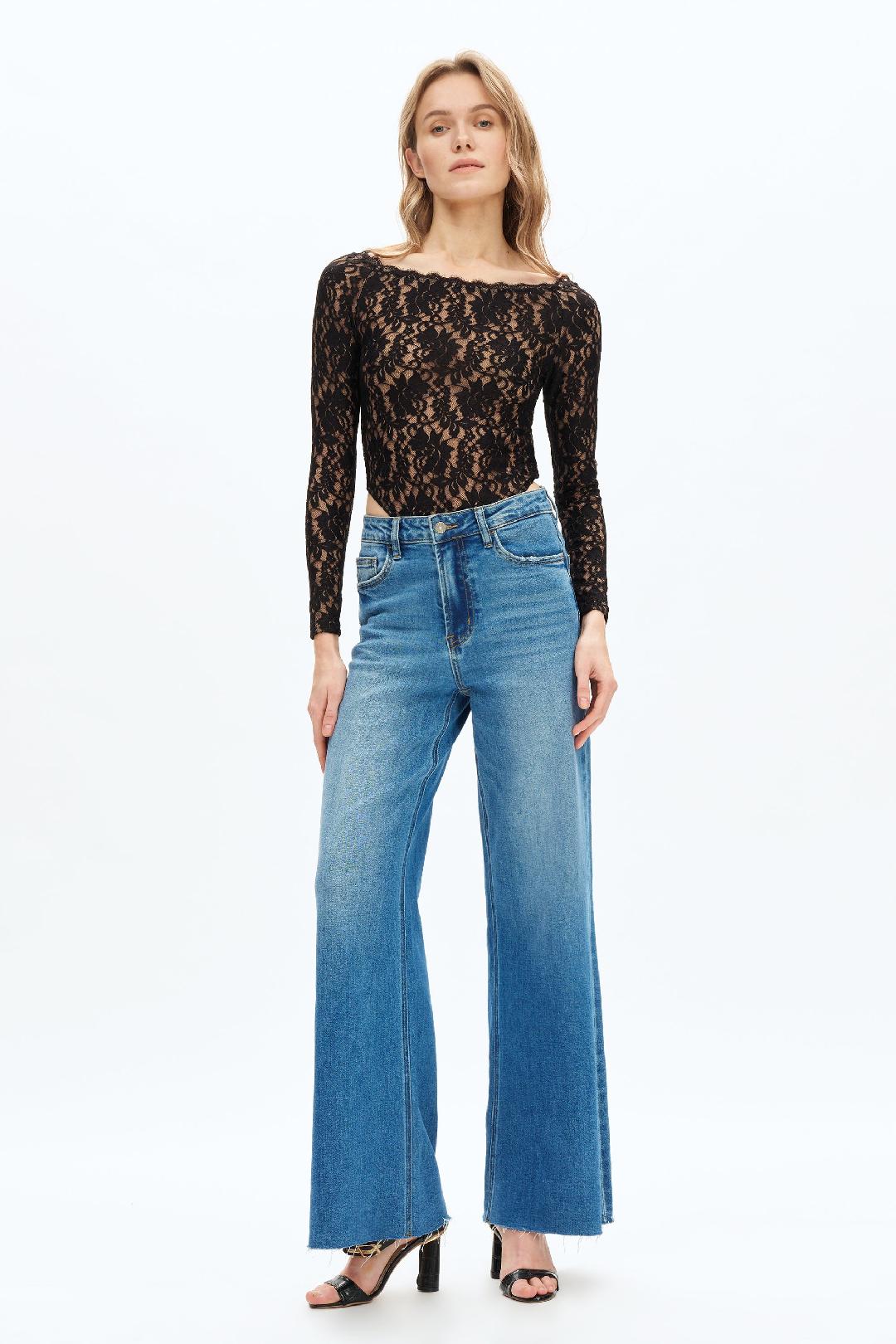 Bayeas High Rise Wide Leg Denim Medium Blue