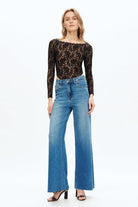 These high-rise wide leg jeans combine a classic silhouette with modern comfort. Crafted from denim with built-in stretch, they offer structure through the waist and hips while allowing easy movement throughout the day. Designed with a flattering high-rise fit, they hug through the top and release into a full-length wide leg that creates a long, elongating line. The medium wash features subtle fading for a soft, lived-in look, finished with a clean waistband, classic five-pocket styling, and a raw hem for just the right amount of edge. Polished enough for a heel, effortless with a sneaker — a comfortable statement denim you’ll reach for on repeat.