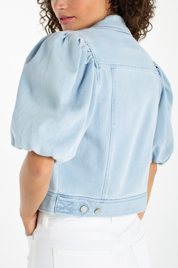 Liverpool Puff Sleeve Cropped Denim Jacket