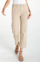 Designed with a flattering mid rise and cropped straight leg, this style balances structure and ease. Thoughtful pocket detailing and adjustable side tabs bring a modern edge to everyday dressing.