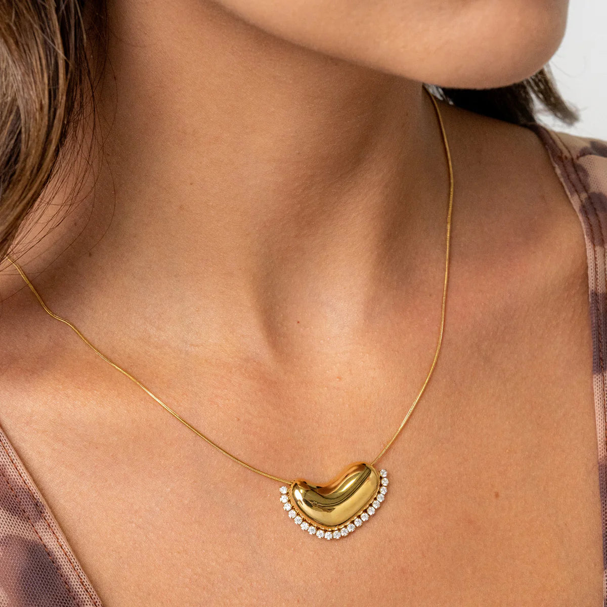 This golden bean-shaped pendant is adorned with sparkling diamond accent stones, sure to catch the eye. It's water-resistant, so you can always wear your good luck charm, rain or shine. Bring on the compliments!