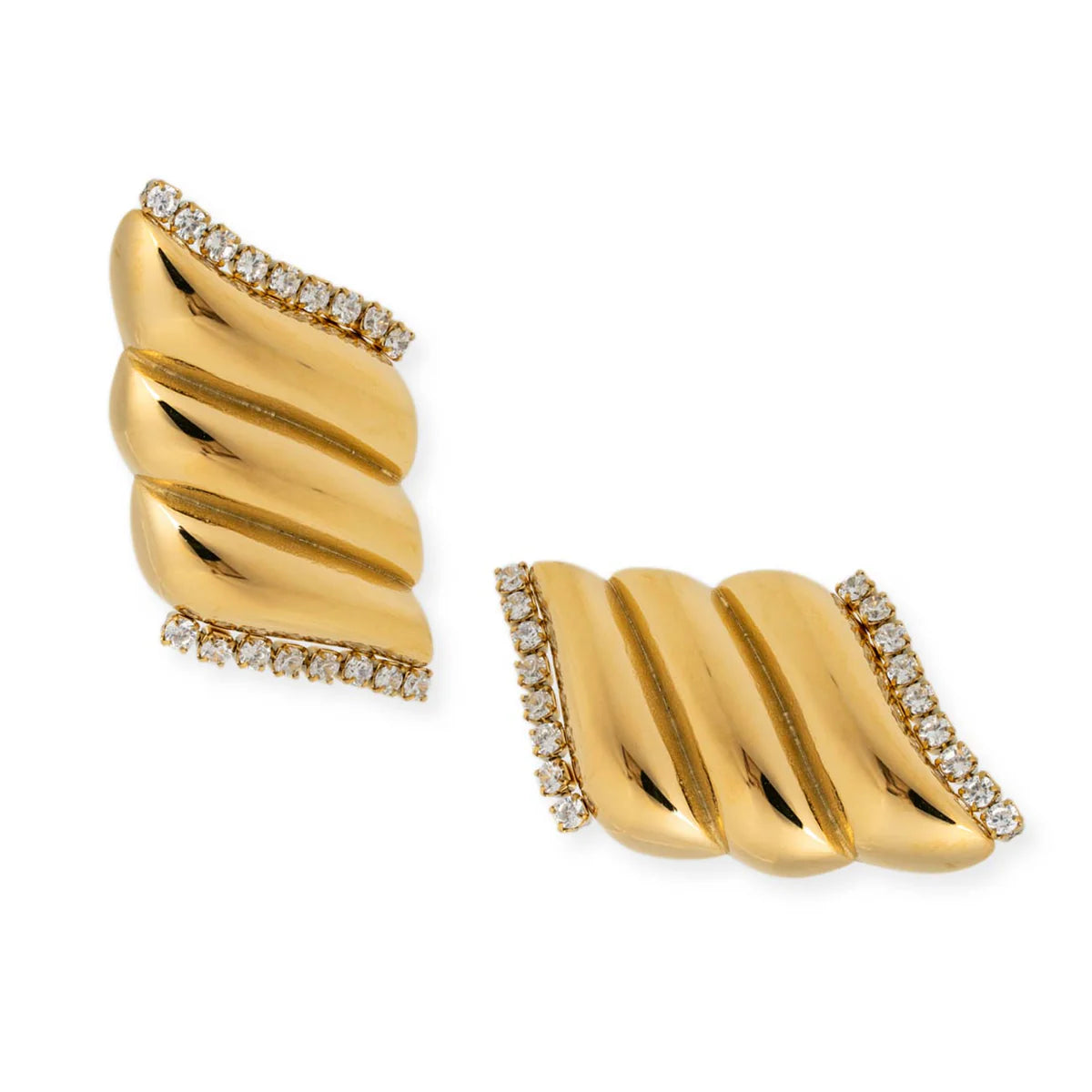 Achieve a bold and stylish look with our Lucia Winged Earrings. Featuring a unique winged design and sparkling cubic zirconia accents, these earrings are perfect for adding a touch of glam to any outfit. Made with high-quality materials for lasting wear.