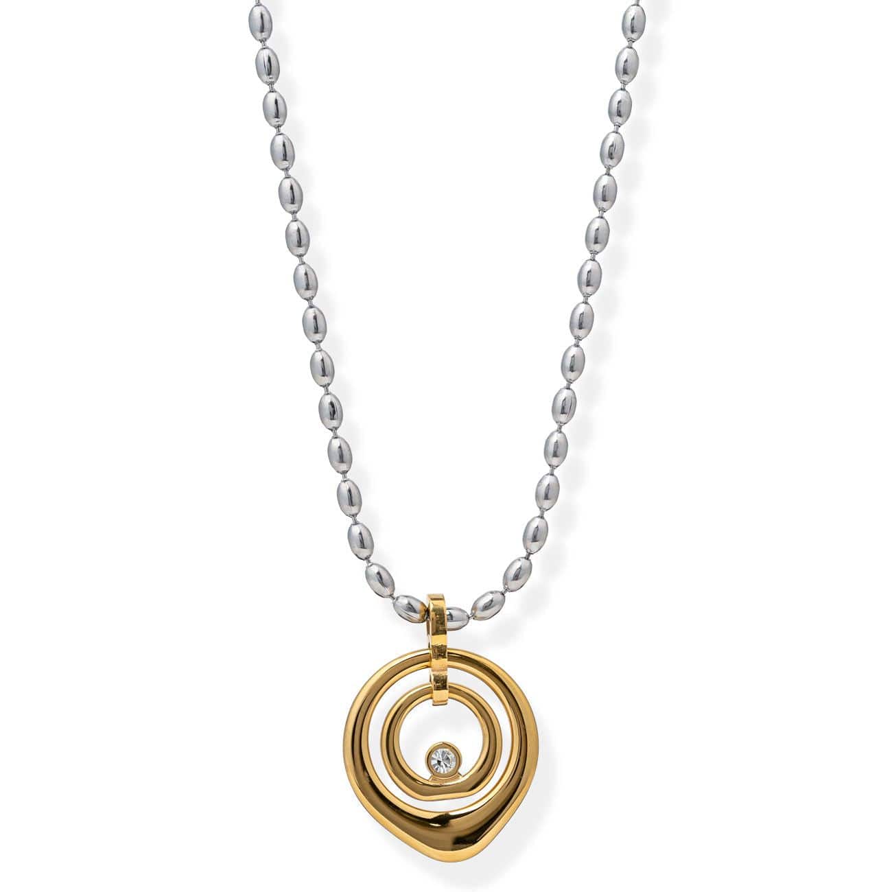 The Nova Necklace: a playful and fashionable pendant with a mix of silver and gold. Stay stylish and unique with this durable necklace.
