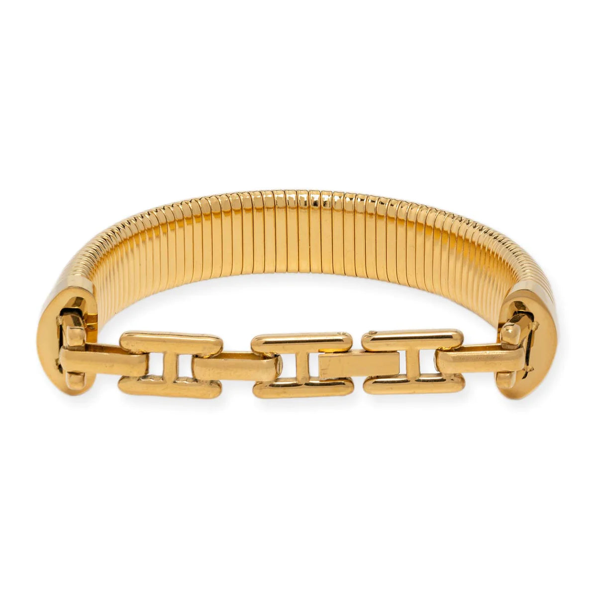 This elegant She's Unbreakable single Bracelet is made with Bracha's signature coil design with a thick chain link accent for an aesthetic appeal. It is also water and tarnish-resistant, making it perfect for everyday wear.