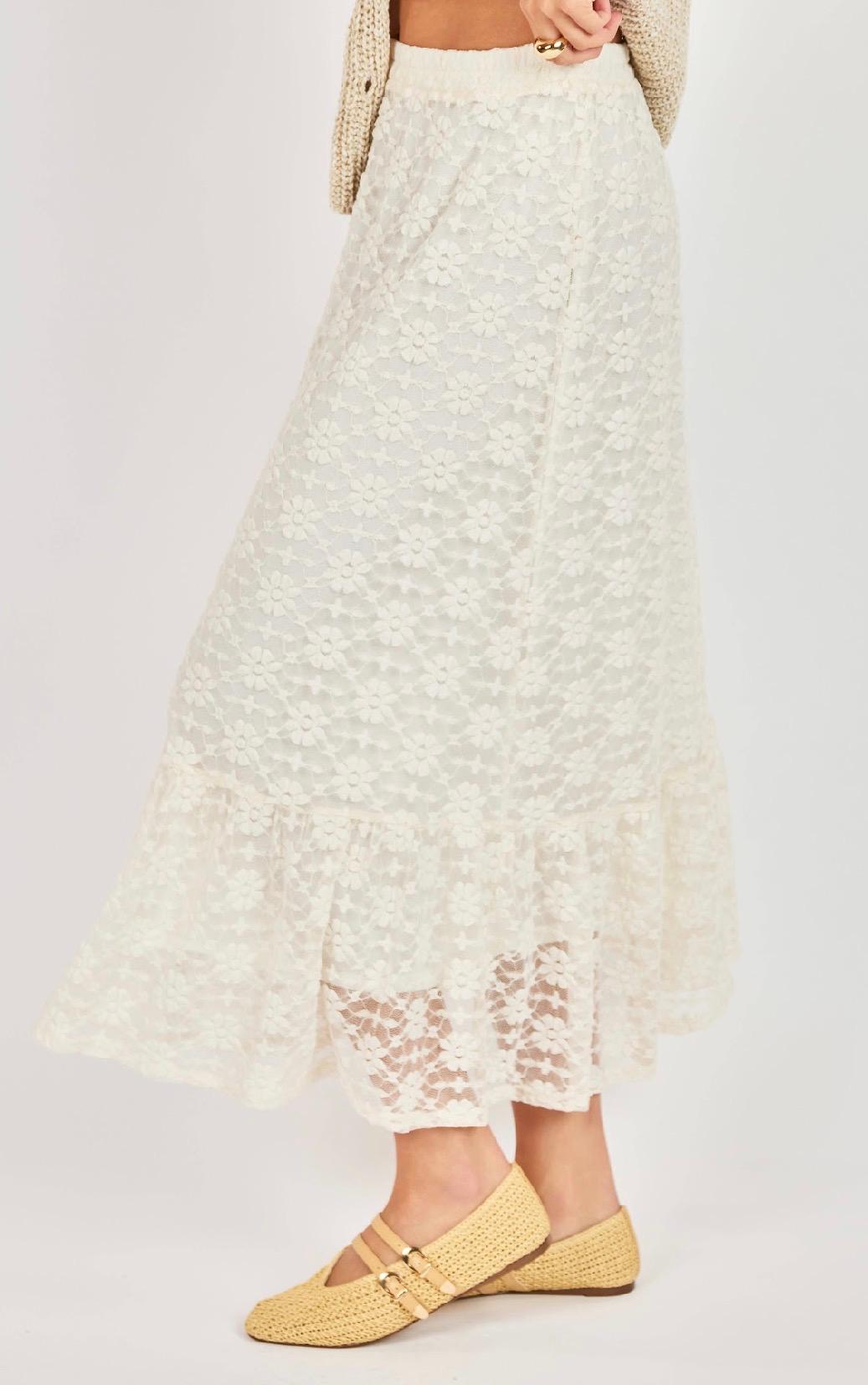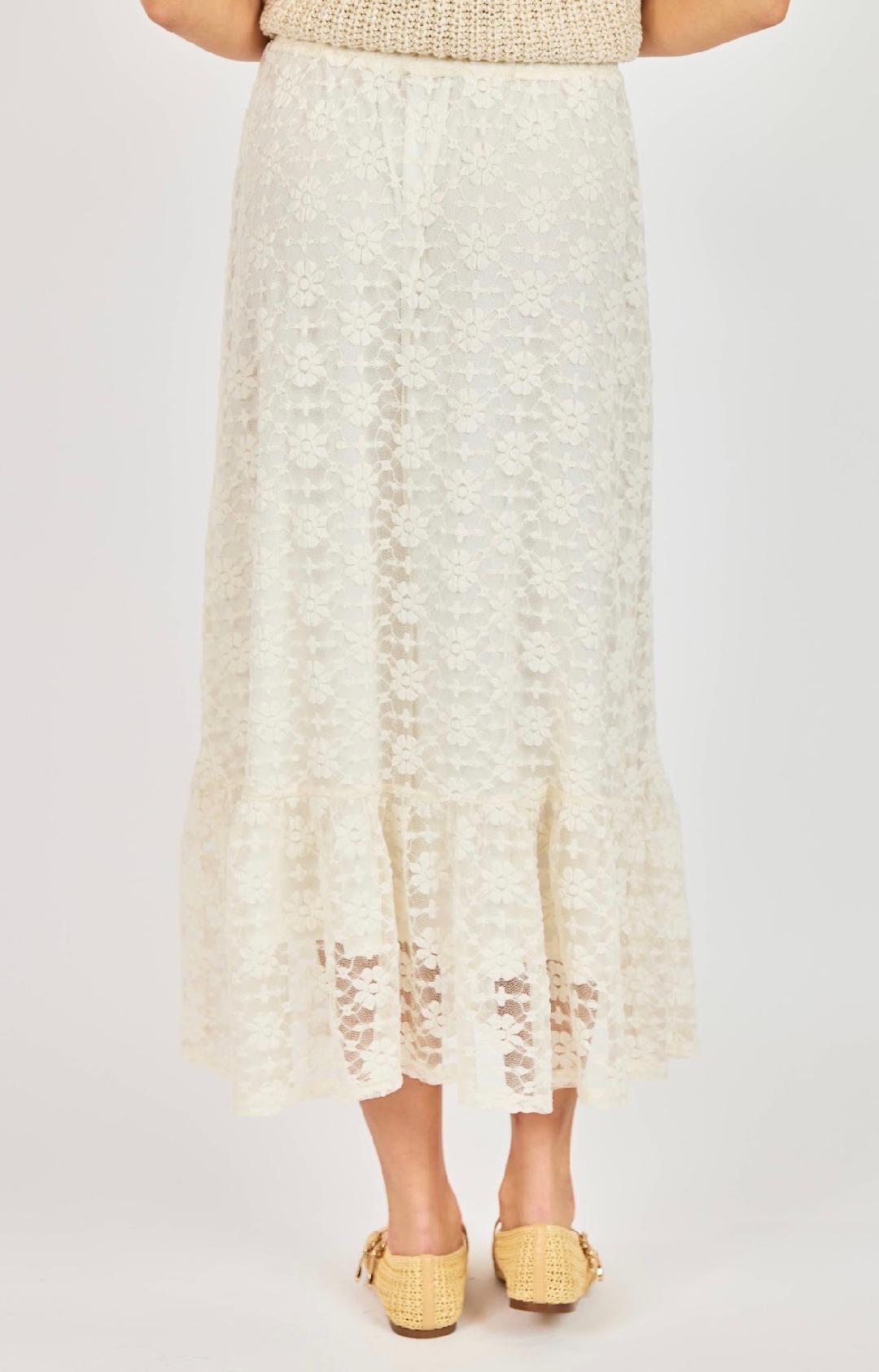 Cream Lace Midi Skirt