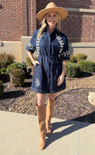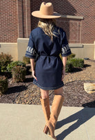 Navy Heirloom Embroidered Linen Shirt Dress
