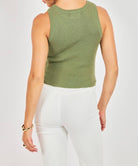 A clean, elevated essential, this ribbed knit tank features a classic high neckline and a flattering, fitted silhouette. Designed in a soft, stretchy knit, it hugs comfortably while maintaining its shape—perfect for layering or wearing on its own.