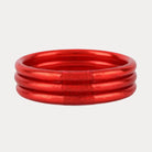 BuDhaGirl Crimson All Weather Bangles® (AWB®) are available for a limited time only! Crimson All Weather Bangles® (AWB®), are the epitome of luxury in BuDhaGirl's impressive lifestyle collection. Our remarkable bangles redefine elegance with their weightless, soundless, waterproof, and TSA-proof design. Crafted to perfection, each set comprises of three bangles, symbolizing intentions for the day. Wear them anywhere, as their soundless and waterproof nature ensures seamless integration into any setting.
