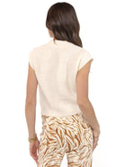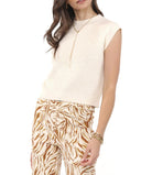 This sleeveless sweater top offers the perfect balance of cozy and chic. Crafted in a soft waffle knit texture, it features a crew neckline, cap-style sleeves, and a relaxed fit that falls at the waist with a ribbed hemline for structure. The creamy ivory shade makes it a versatile layering piece that transitions seamlessly from season to season. Pair it with tailored trousers or printed bottoms for an elevated look or style it casually with denim and sneakers for effortless everyday wear.