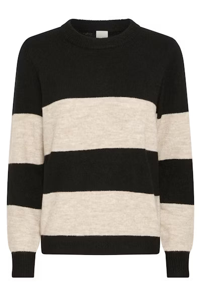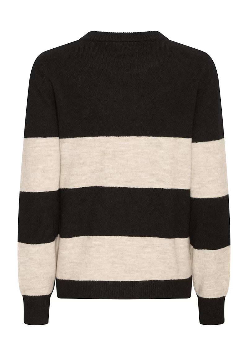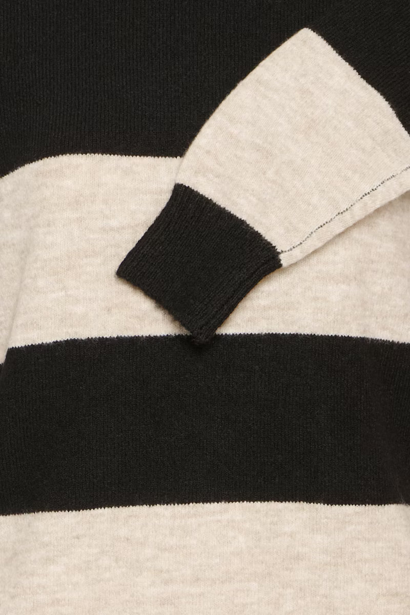 • Black and heathered oatmeal stripes