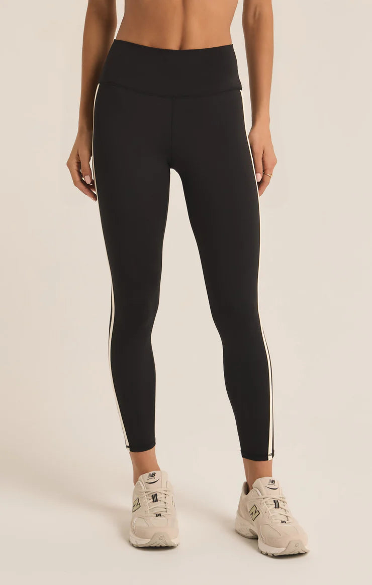 Step up your workout with these high-rise leggings featuring a contrast stripe detail along the sides. Crafted from Z Supply's signature Pure Performance fabric with moisture-wicking properties and a convenient card pocket, these ankle-length leggings offer both style and functionality for your active lifestyle. Get the matching High Contrast Tank Sports Bra for a complete set.