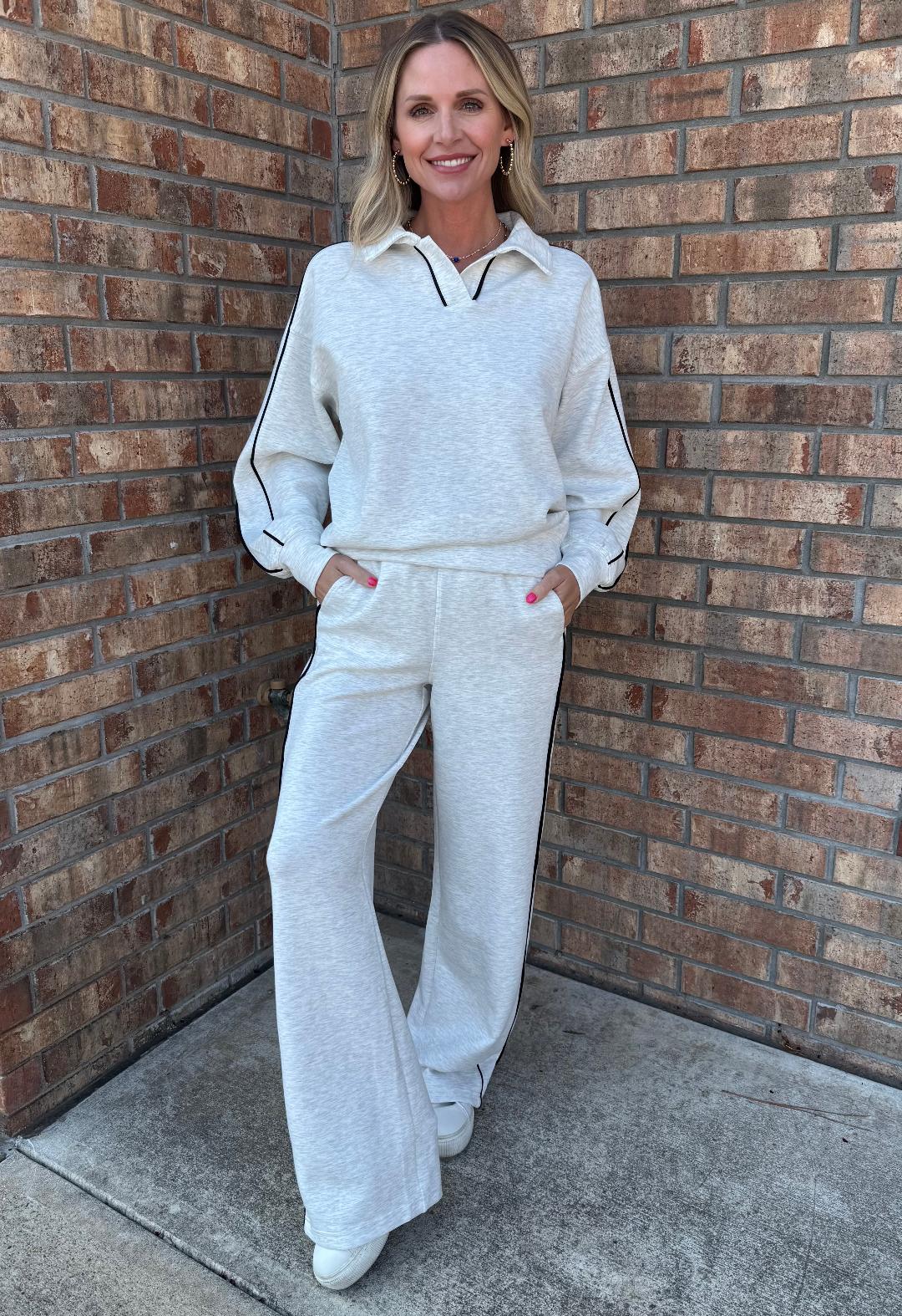 Scuba Modal Straight Leg Side Piping Pant - Heather Gray