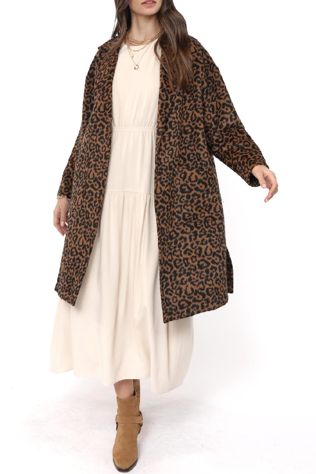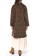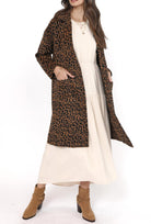Bring out your bold side with the Animal Instinct Leopard Coat. Designed in a classic mid-length silhouette, this coat features an allover leopard print in rich brown and black tones. Crafted with a subtle furry, soft-touch finish, it offers both warmth and luxe texture. The relaxed fit and open-front style make it perfect for layering over dresses, denim, or tailored looks. Complete with side pockets and a straight hem, it’s a statement-making piece that blends comfort with fierce sophistication.
