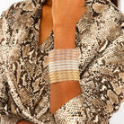 Mindful Glamour® Ritual: Pause. Breathe. Slip on each BIBI bangle focusing on each color: gold, for warmth and strength, white gold for clarity, and rose gold for gratitude. Think of each bead as a connection and reminder throughout your day.