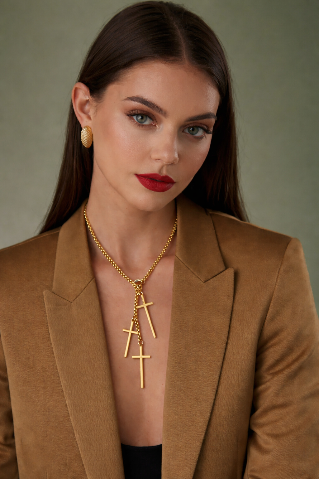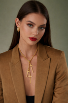 All Gina Carmen jewelry materials are stainless steel (all silver, never turns), gold plated ion (water and tarnish resistant). Gina Carmen jewelry feels very substantial and high-quality because of the materials it is made of.