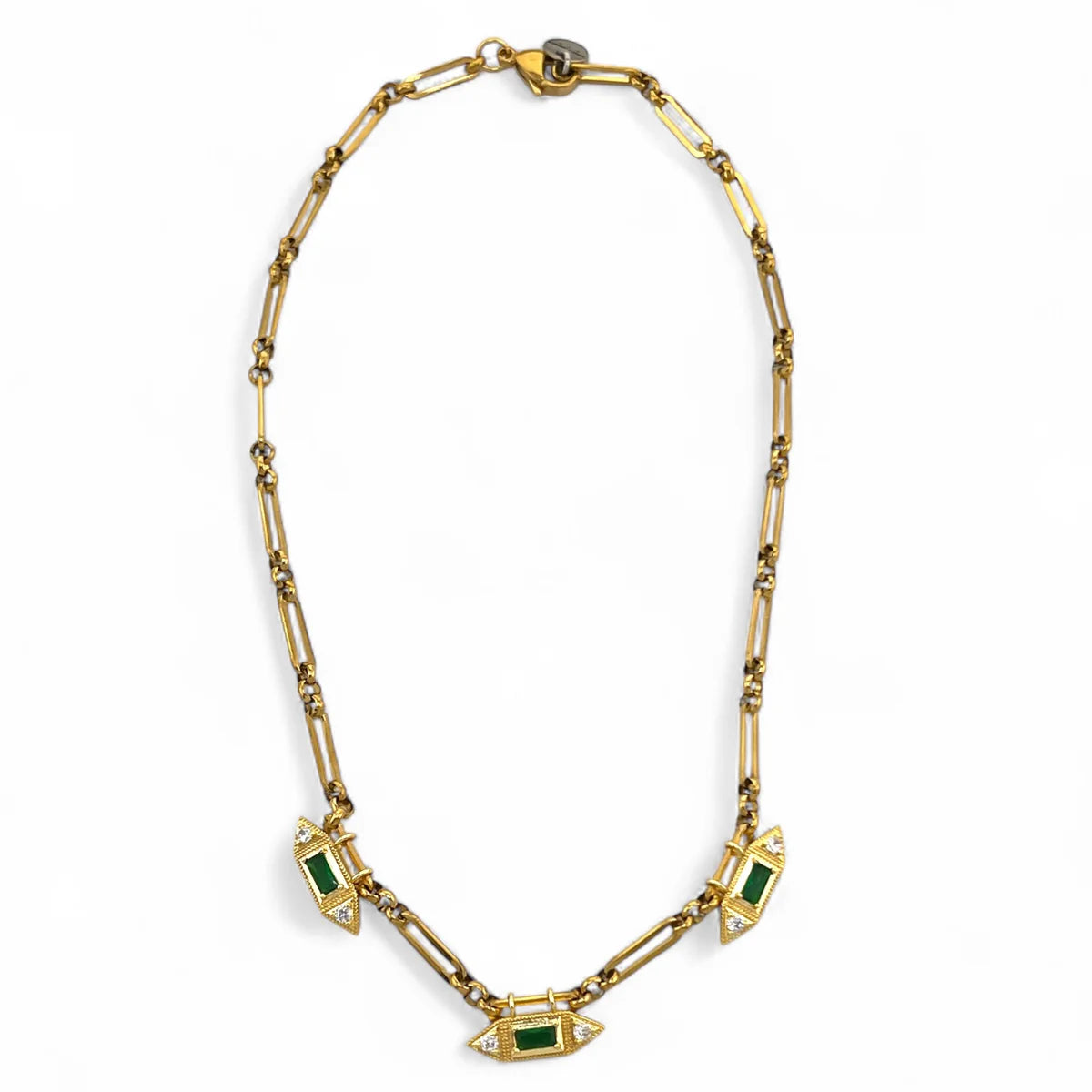 All Gina Carmen jewelry materials are stainless steel (all silver, never turns), gold plated ion (water and tarnish resistant). Gina Carmen jewelry feels very substantial and high-quality because of the materials it is made of.