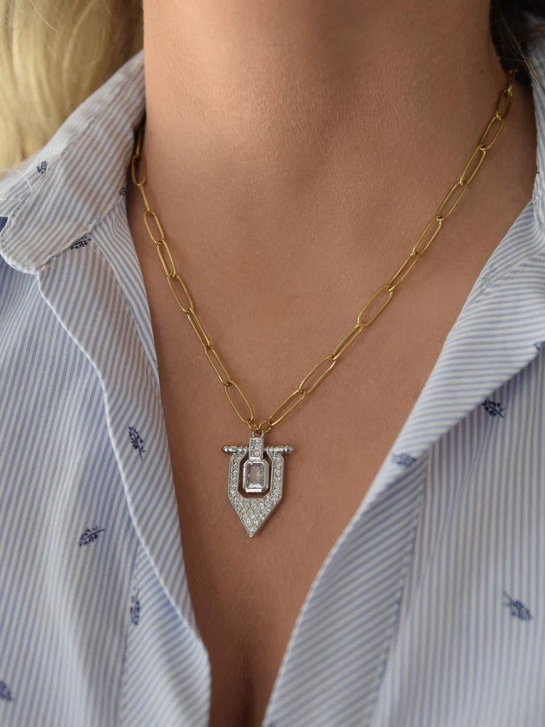 Non-tarnish shield necklace