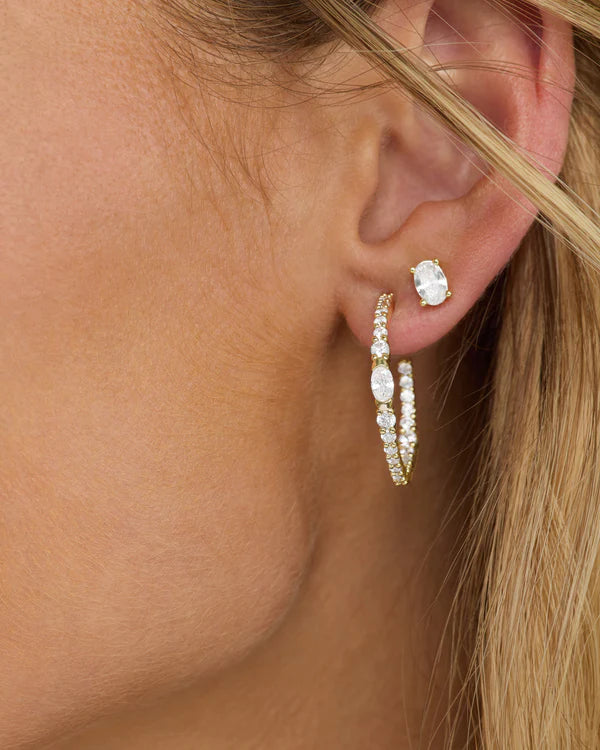 Designed for women who move. The Maven 1" Hoops bring a modern edge to a classic shape with MM's Horizon Setting that lets each stone breathe. Lightweight, versatile, and finished with a pop of diamonds for effortless impact.