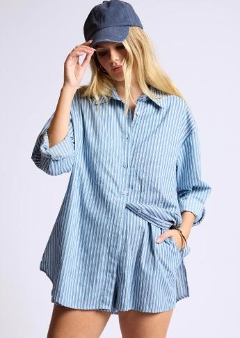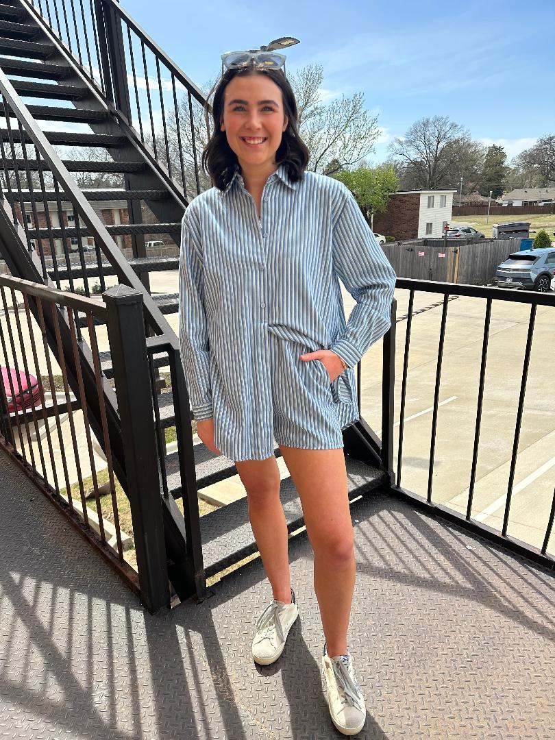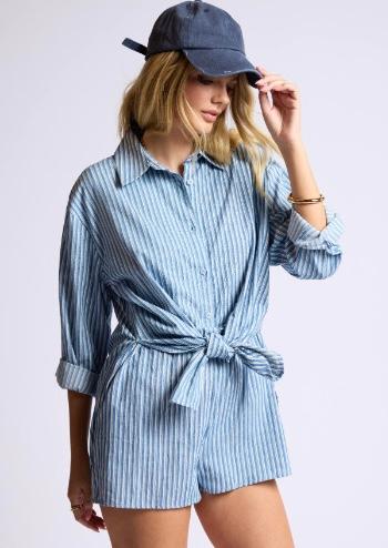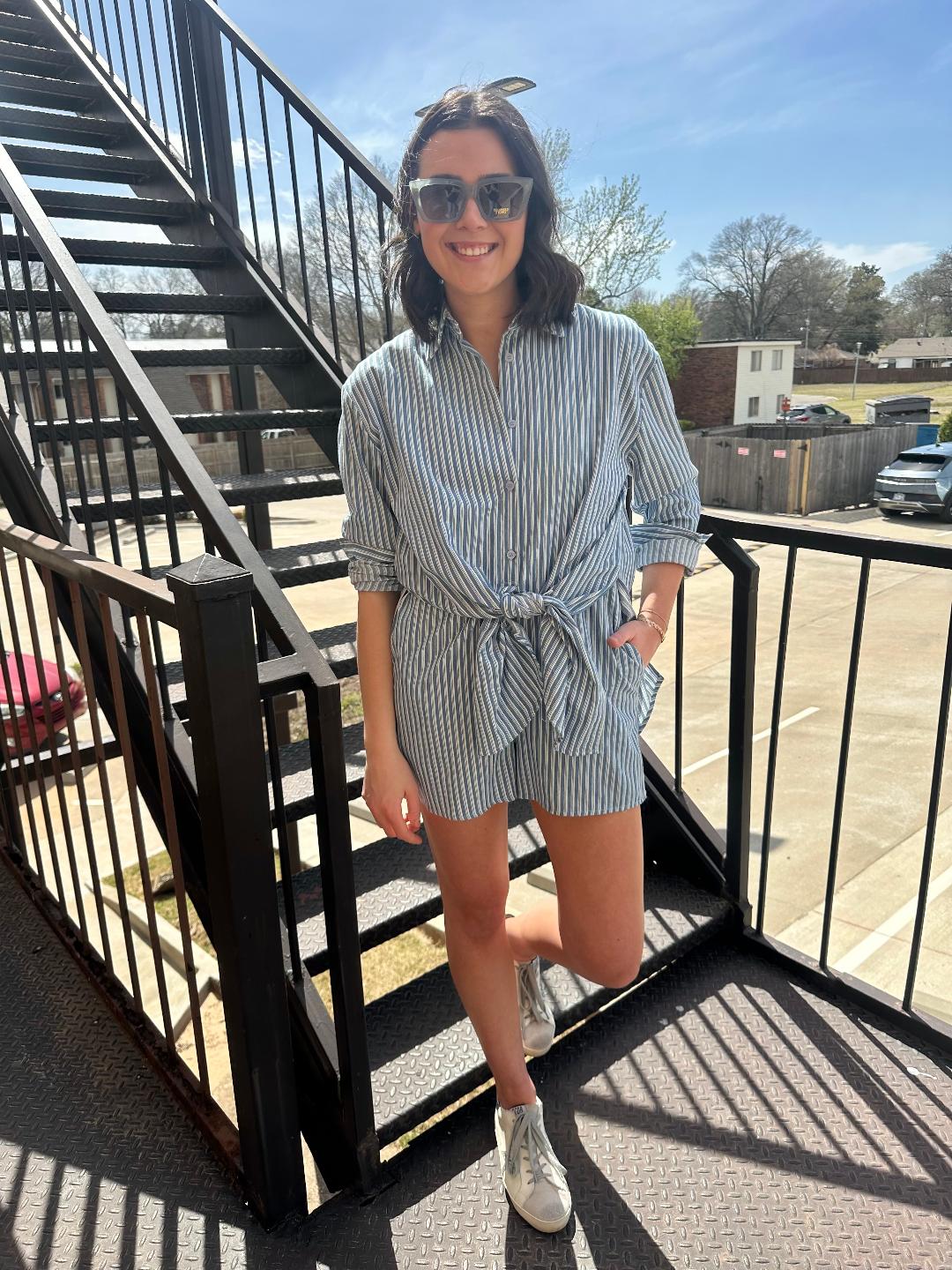 Casual days just got a whole lot cuter! This is one piece giving the look of a button up shirt styled with matching shorts. An effortless, one-and-done look for all of your casual, every day occasions.