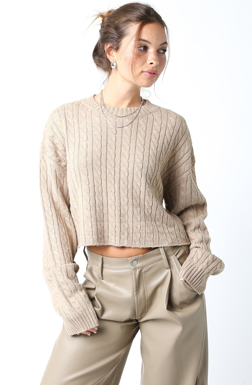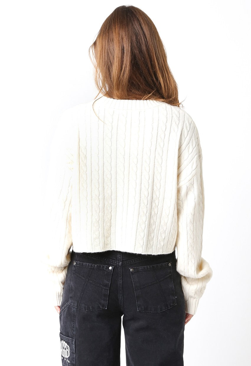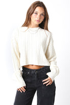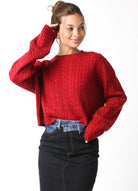 Classic meets modern in this cable knit sweater, designed with a timeless textured pattern and a slightly boxy fit. The crew neckline and drop shoulders add to its relaxed vibe, while the length makes it perfect for pairing with high-waisted denim, skirts, or trousers. Ribbed cuffs and hemline finish off the look with a polished touch.