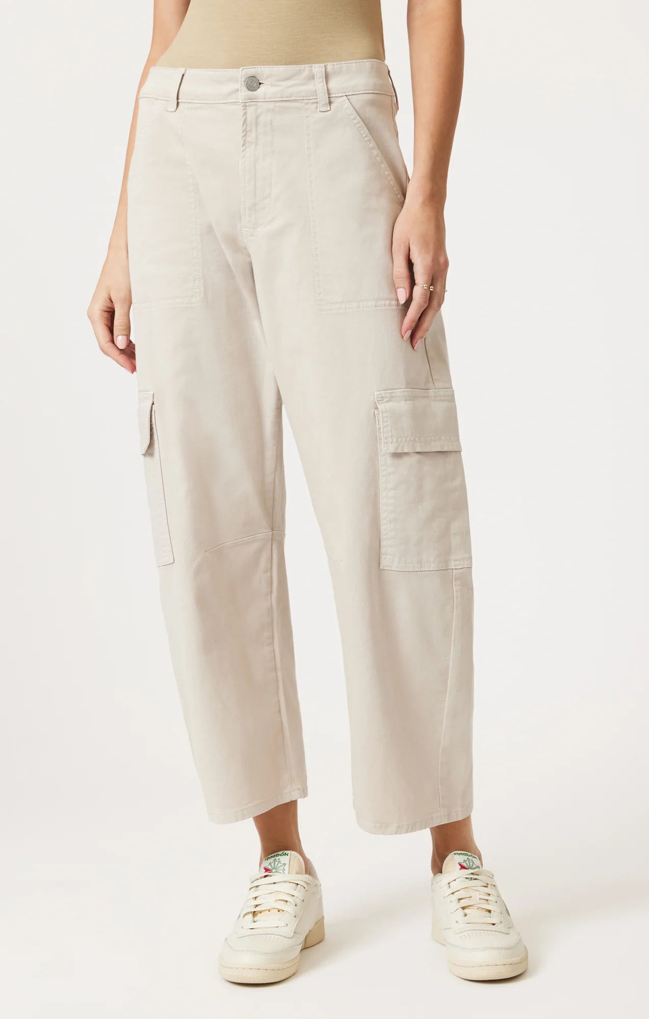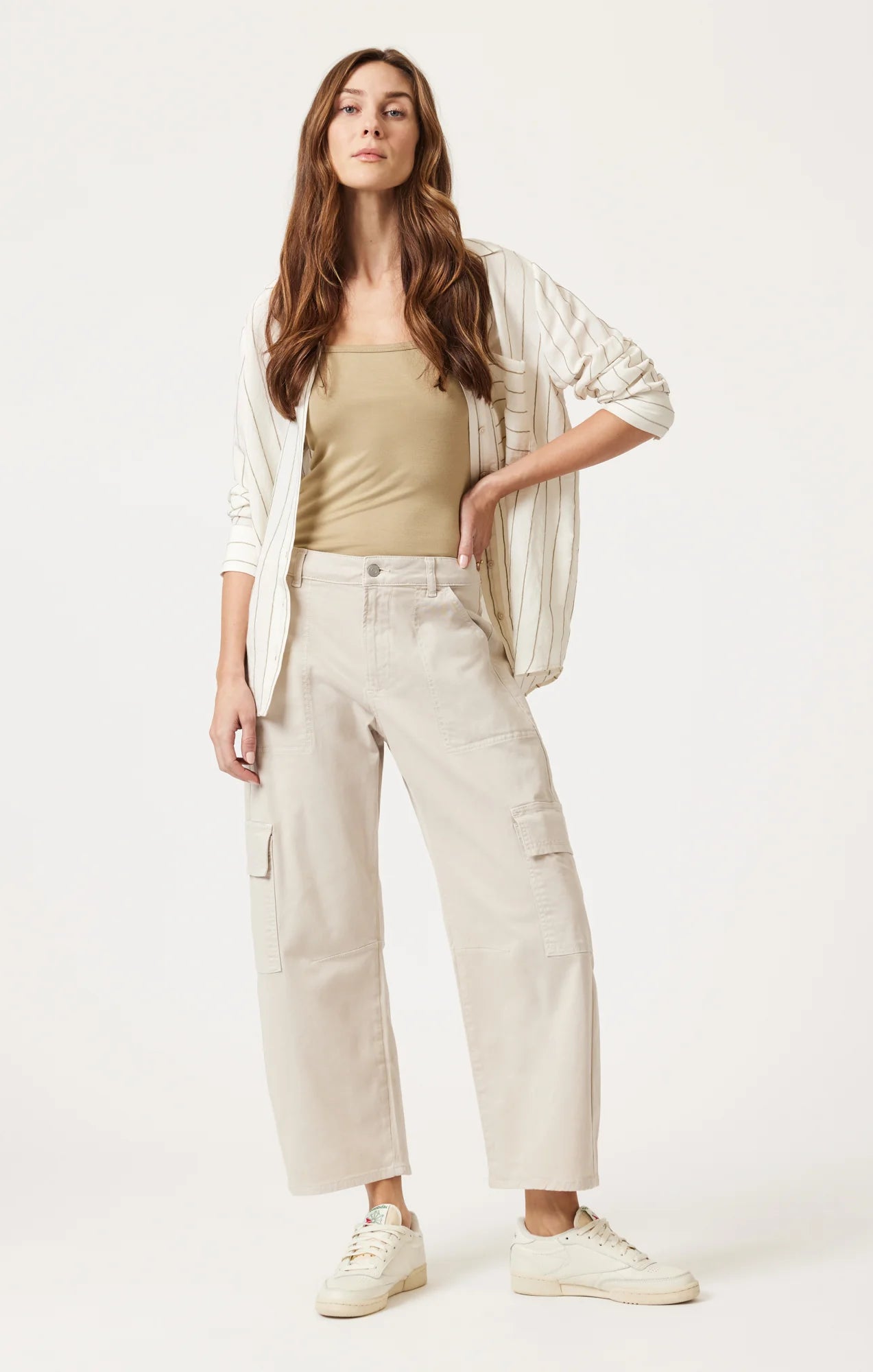 Made from a midweight fabric with an easy-wearing drape, these high rise barrel cargos are a timeless casual staple. Finished in a beige hue, this is a versatile, classic pair. Mavi's twill is a mid weight fabric with a moderate amount of stretch and features a slightly peached texture that's soft to the touch. This versatile knit has an easy-wearing drape that always feels comfortable and timeless.