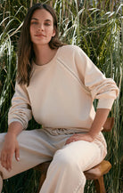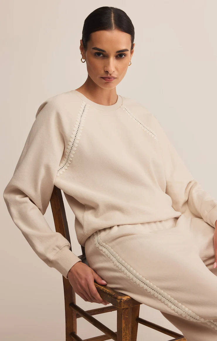 Detailed embroidery and crochet-accented raglan sleeves elevate this relaxed crewneck sweatshirt, crafted from cozy 100% cotton French terry. It's the stylish upgrade you've been looking for. Wear with the matching pant for an effortlessly stylish look.