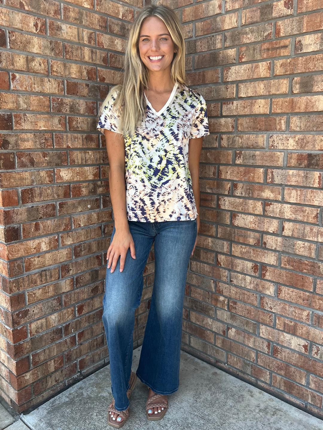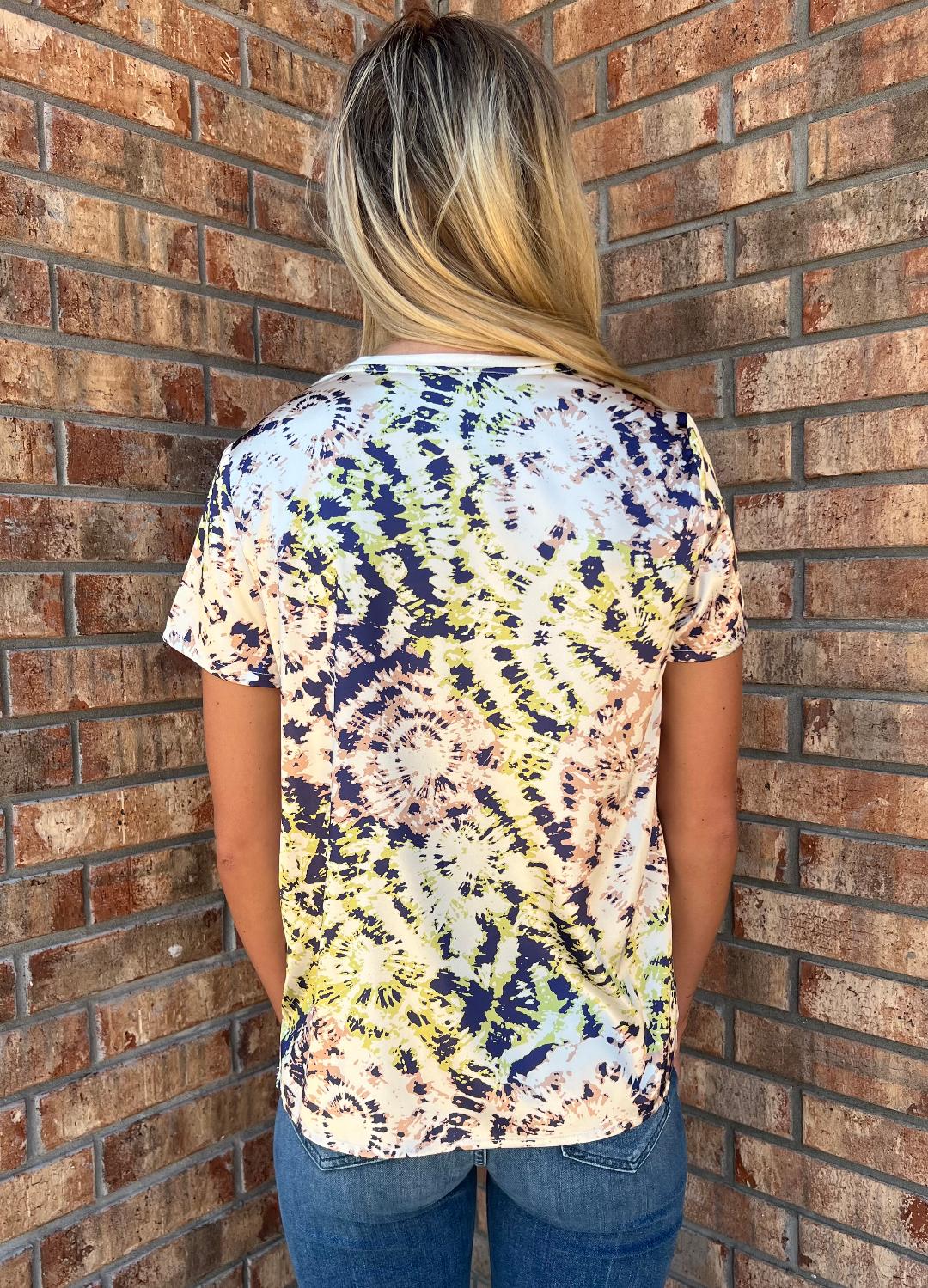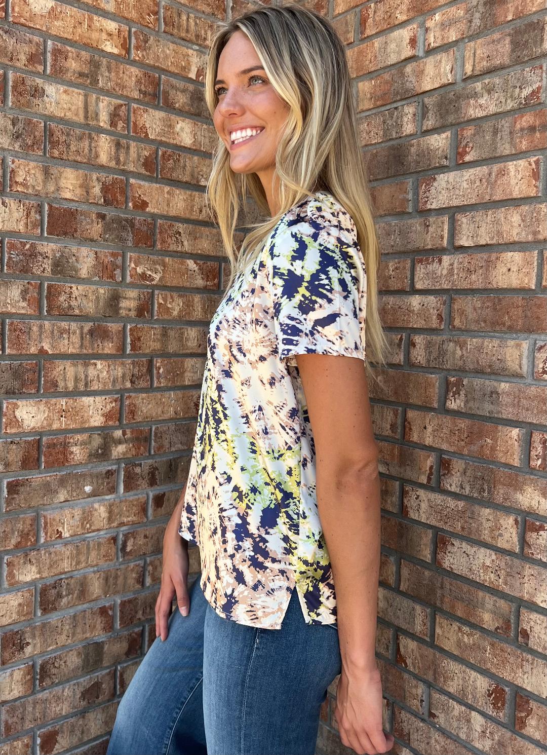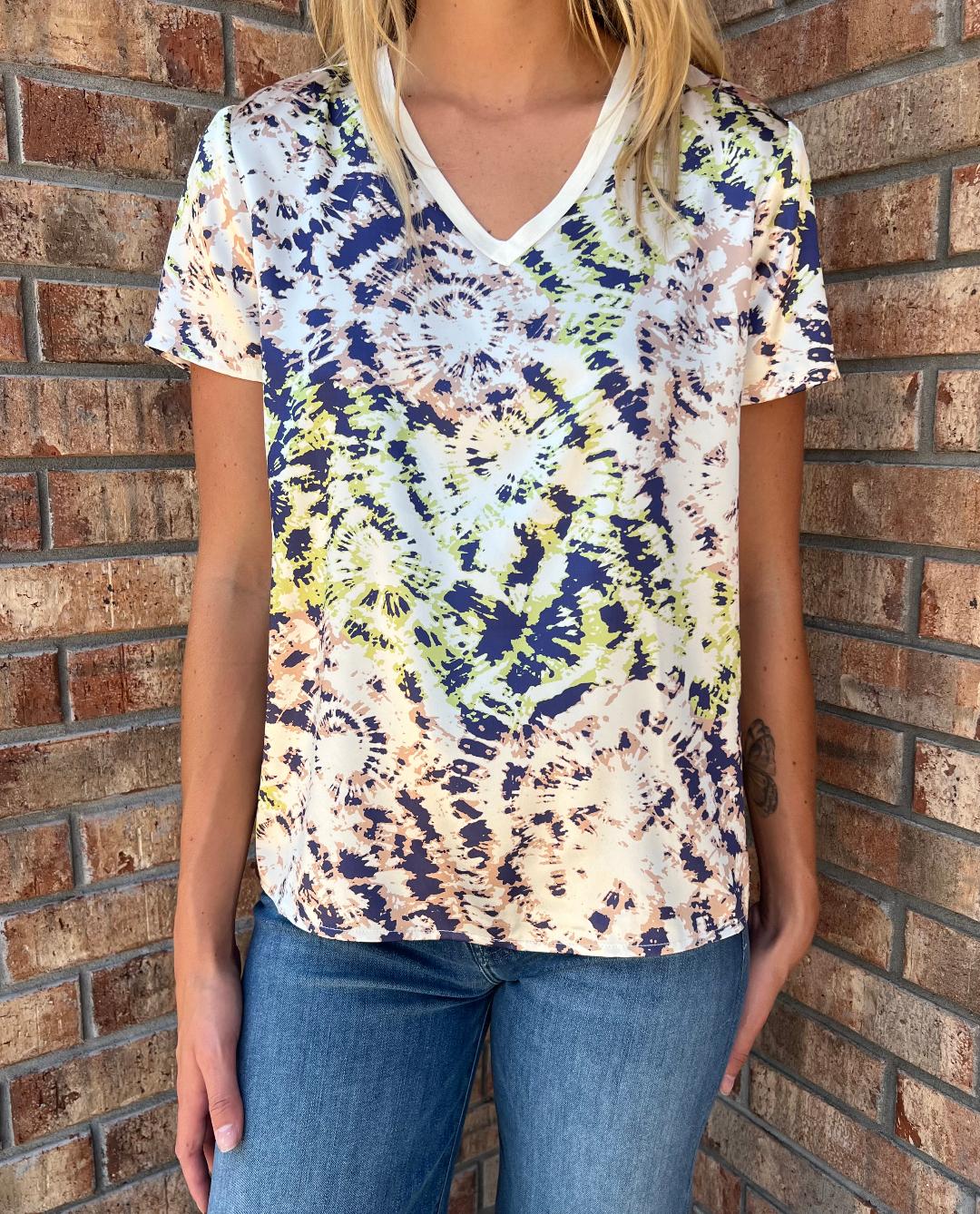 Look stylish and chic wearing this satin shirt. This top features a contrasting v-neck, short sleeves, and a small side slit.