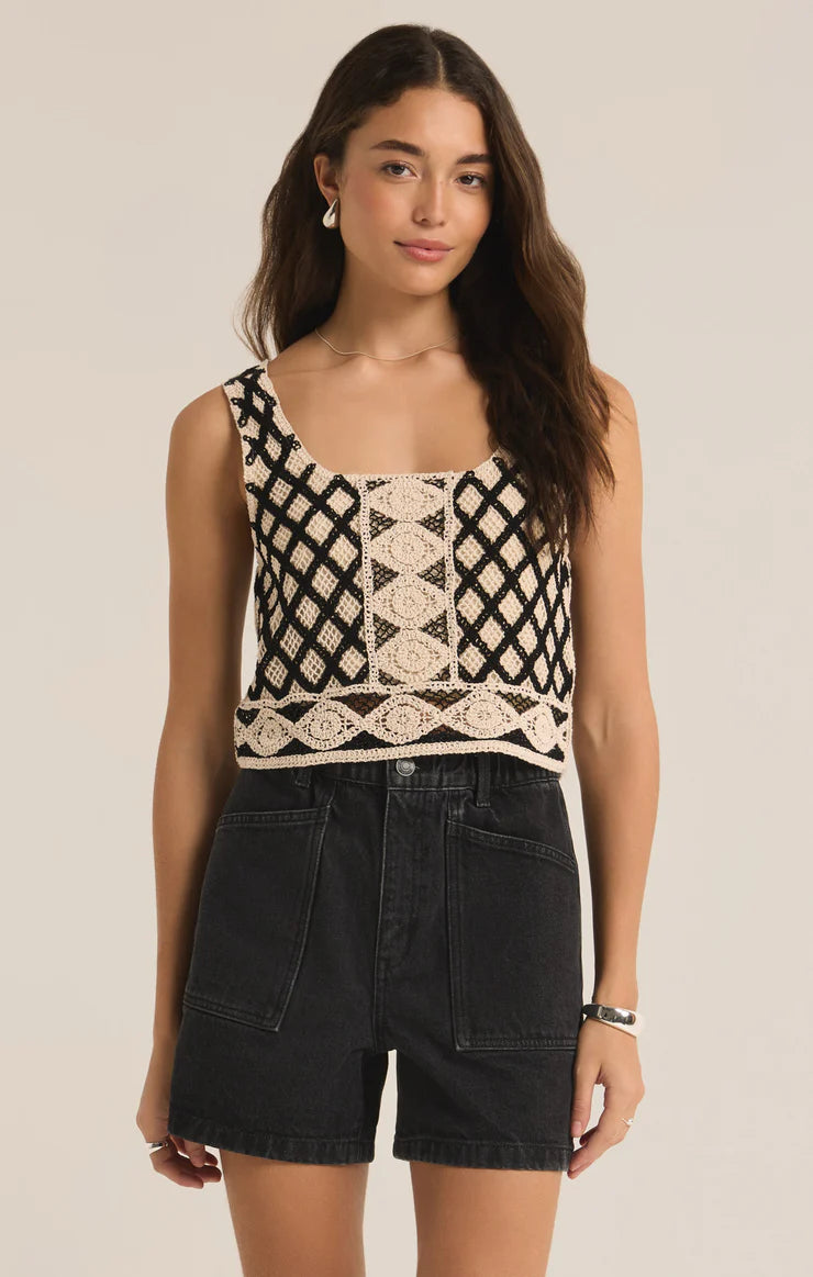 You'll definitely stand out from the crowd in this cropped crochet tank. An intricate crochet pattern creates interest and makes a statement while the bra friendly, lined design gives you all day comfort.