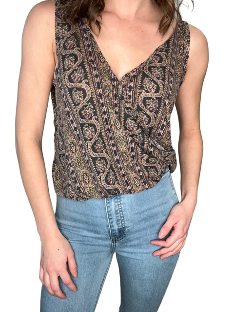 Totally timeless in a twisted, wrap-front design, this effortless tank is featured in a drapey, relaxed fit with raw hems for a true lived-in look. For a Free People moment, pair this tank with our Free People Flare Float On Denim.