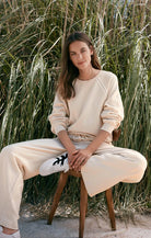 Easygoing with a twist. These cotton French terry wide-legs feature a comfy drawstring waist and delicate crochet trim at the sides for a soft-meets-feminine moment. Get the matching sweatshirt for an elevated casual outfit.