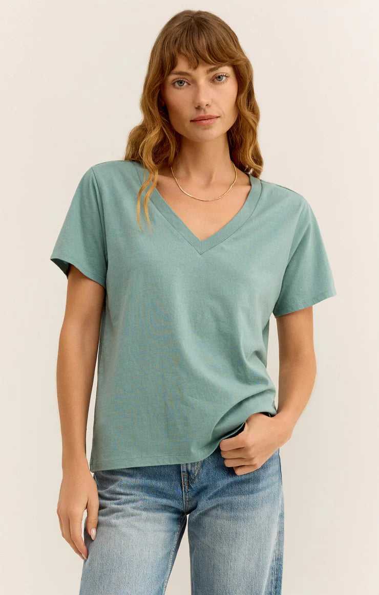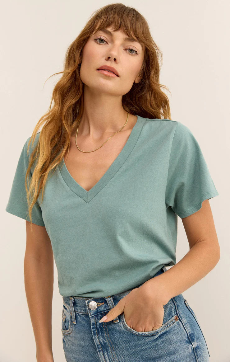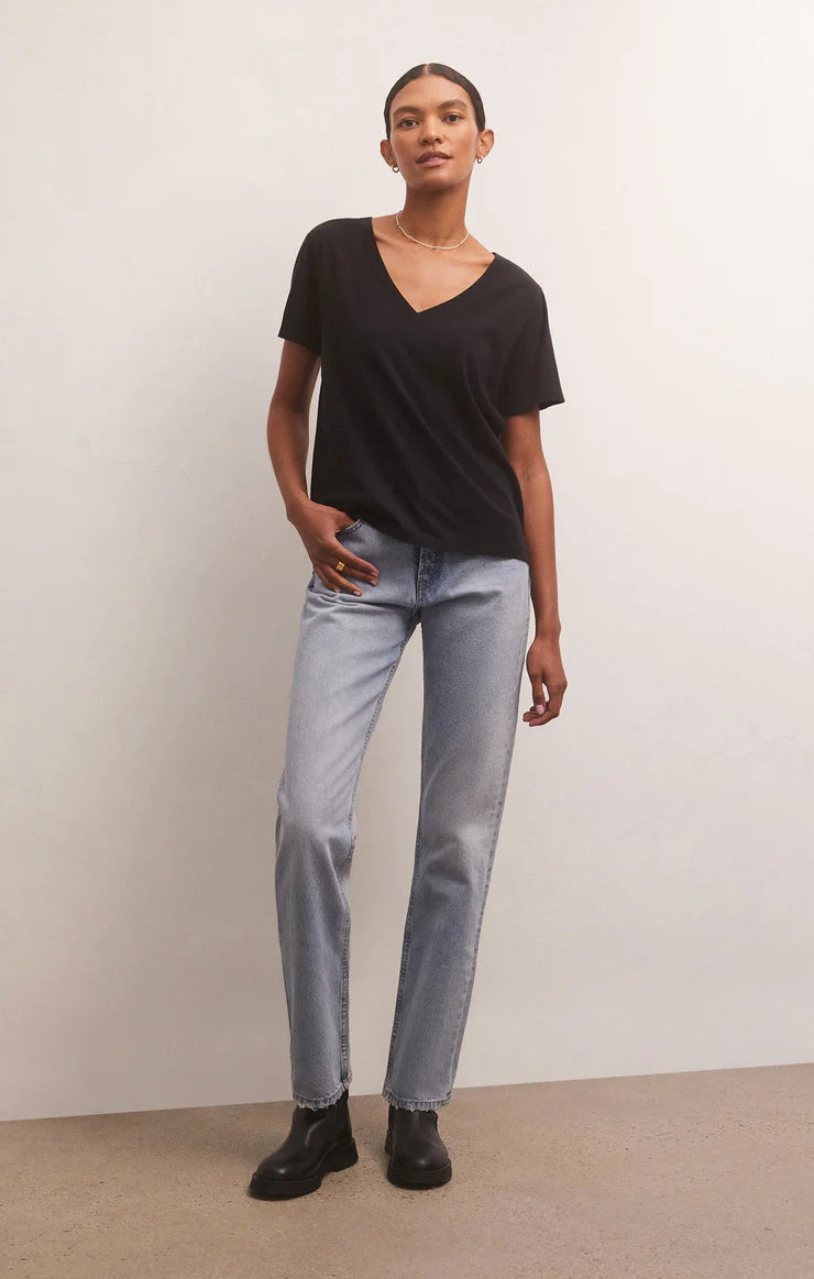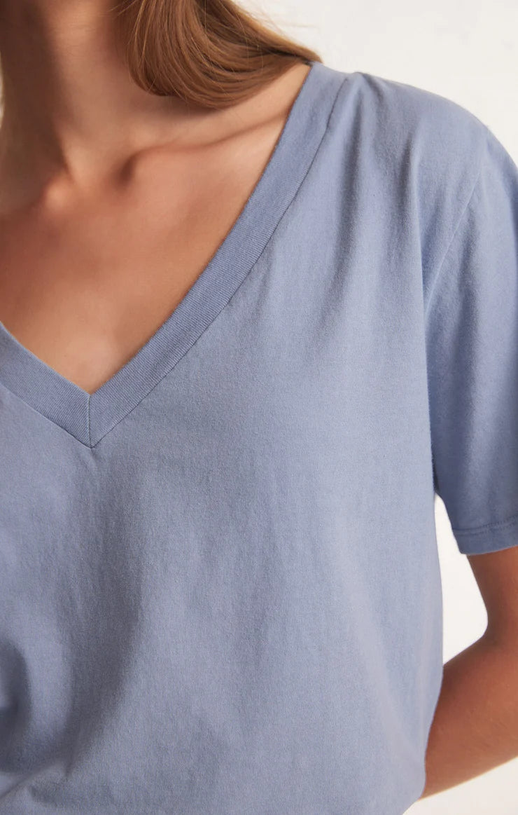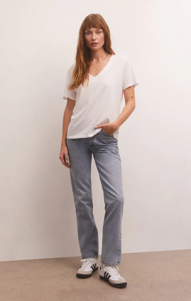 A new addition to our Essentials collection, the Girlfriend V-Neck Tee will be love at first wear. Made in Z Supply's whisper cotton jersey knit fabric with a special wash for worn-in softness. A perfect tee to elevate your look. This relaxed tee looks just as good with denim as it does tucked into a pair of chic pants.