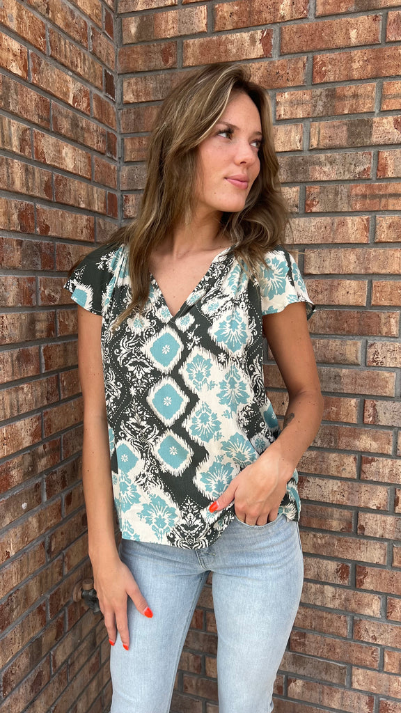 Liverpool Woven 3/4 Sleeve Printed Blouse