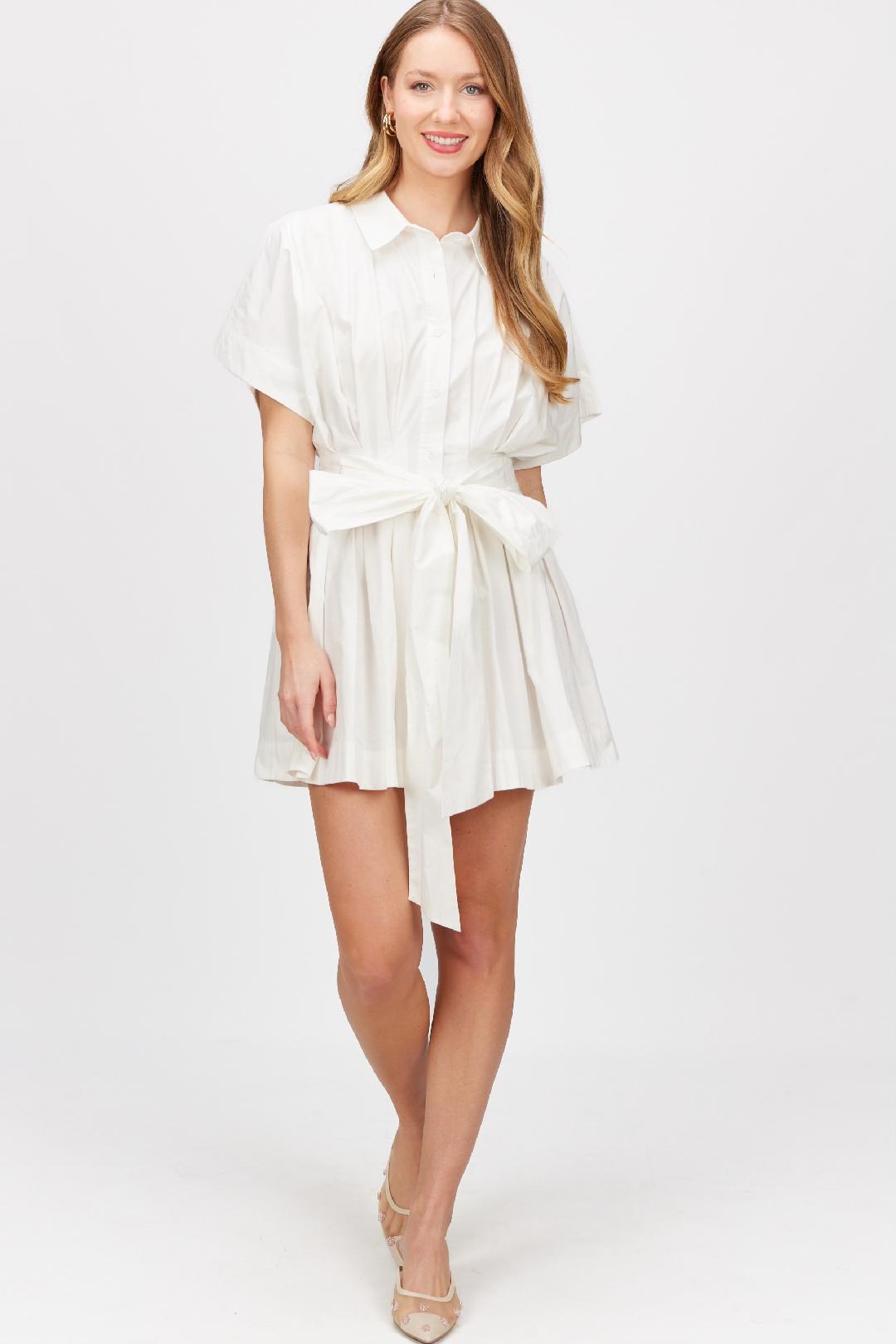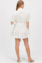 Chic, crisp, and tailored to perfection—the Modern Muse Poplin Shirt Dress brings effortless sophistication to warm-weather dressing. Featuring a wide short sleeve, collared neckline, and structured A-line silhouette, this dress is made from lightweight cotton poplin that feels fresh and breathable. The self-tie belt cinches the waist for a flattering fit, while the button-down front adds a touch of polish. Perfect for a bride-to-be, brunch dates, garden parties, or just feeling put-together on a casual day out.