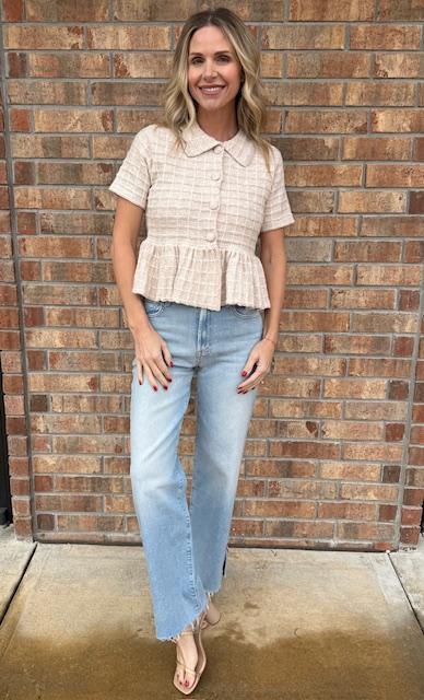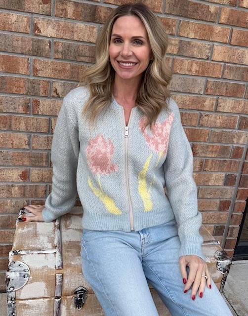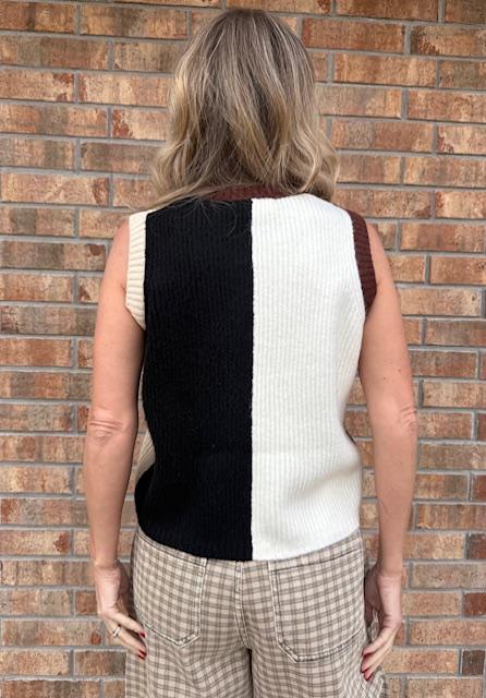 Navy Stripe Sweater w/ Removable Faux Cardigan Detail