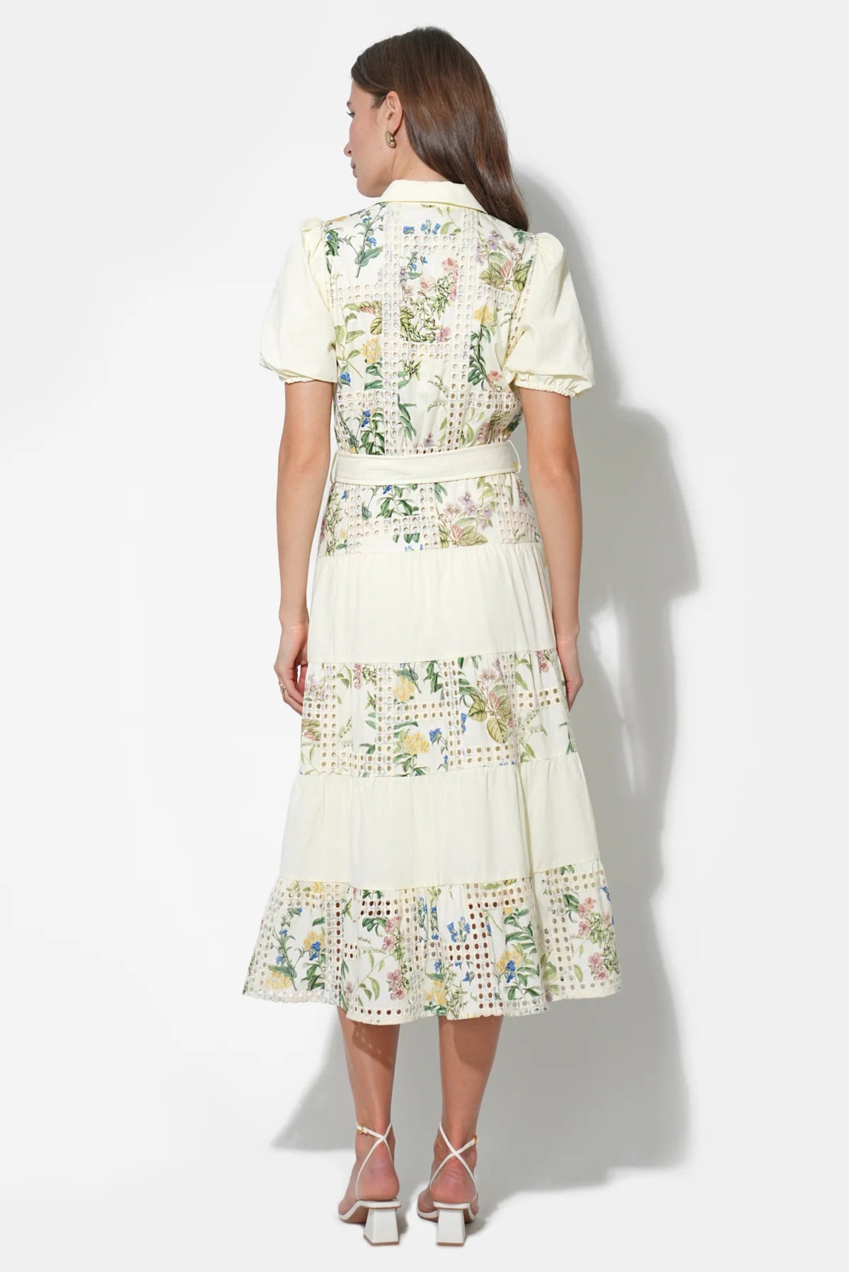 Octavia Embroidery Eyelet Tiered Midi Dress