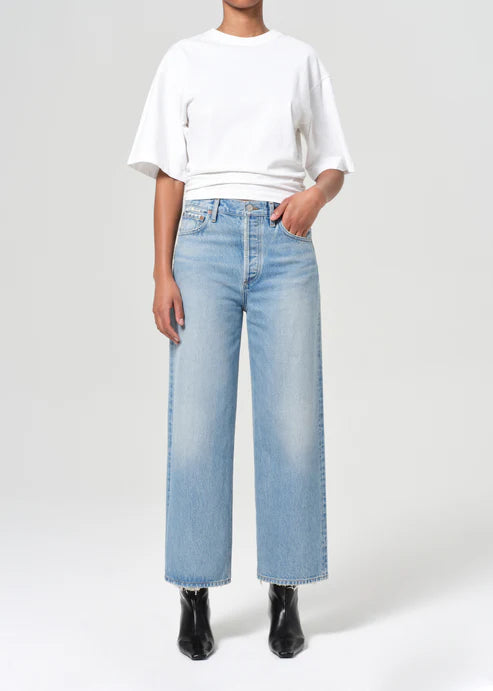 A high-rise wide-leg silhouette, the Ren Jean is designed with a flattering high waist, a relaxed fit through the hips, and an easy, elongated leg shape. Finished in a worn-in medium indigo wash, it balances timeless character with clean, everyday versatility. Crafted from rigid non stretch regenerative cotton denim with a soft hand feel, it delivers structure and all day wearability while maintaining its vintage-inspired appeal.