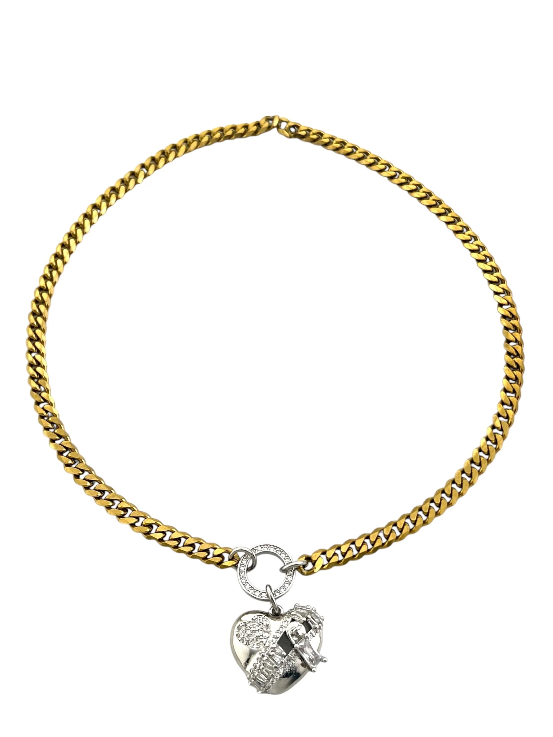 17 inch gold ion and s/s chain with silver cz heart charm