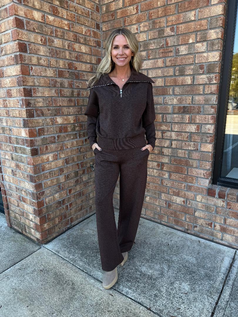 This pant is made from a luxuriously soft, smooth knit with a wide-leg silhouette that drapes beautifully. A flat, pull-on waistband keeps the look sleek and comfortable—perfect for travel days, errands, or dressed-up lounging. Get the matching pullover or mix and match with a tee and denim jacket.