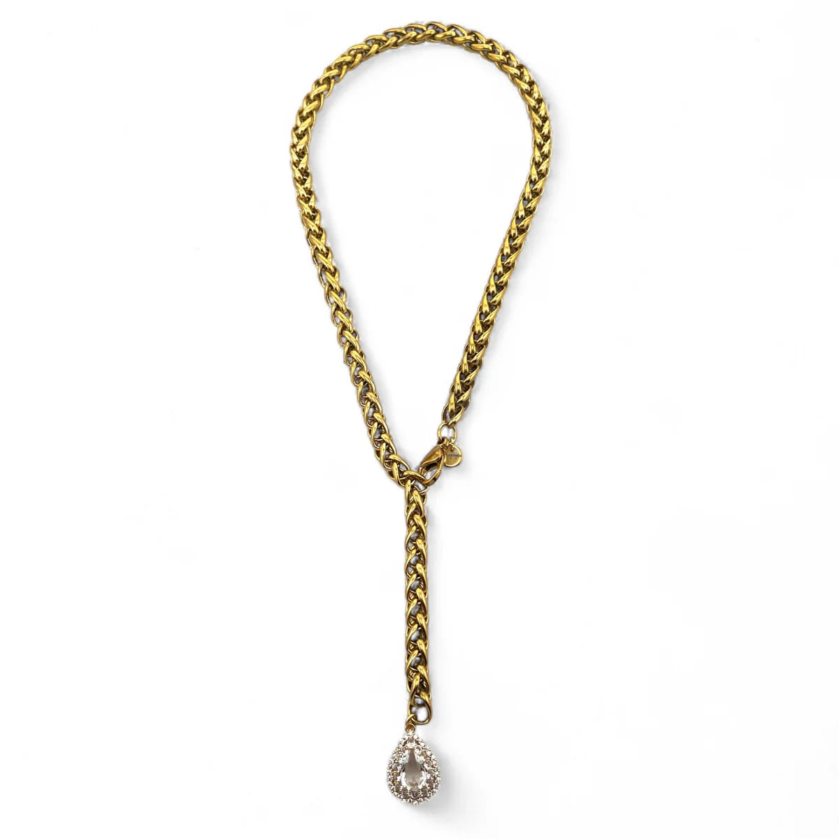 19 inch gold and s/s adjustable lariat with clear cz charm
