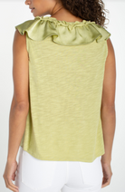 Lime Crema Ruffled Neckline Sleeveless Top