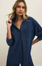 Reese Jersey Denim Button Up Indigo