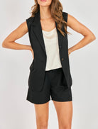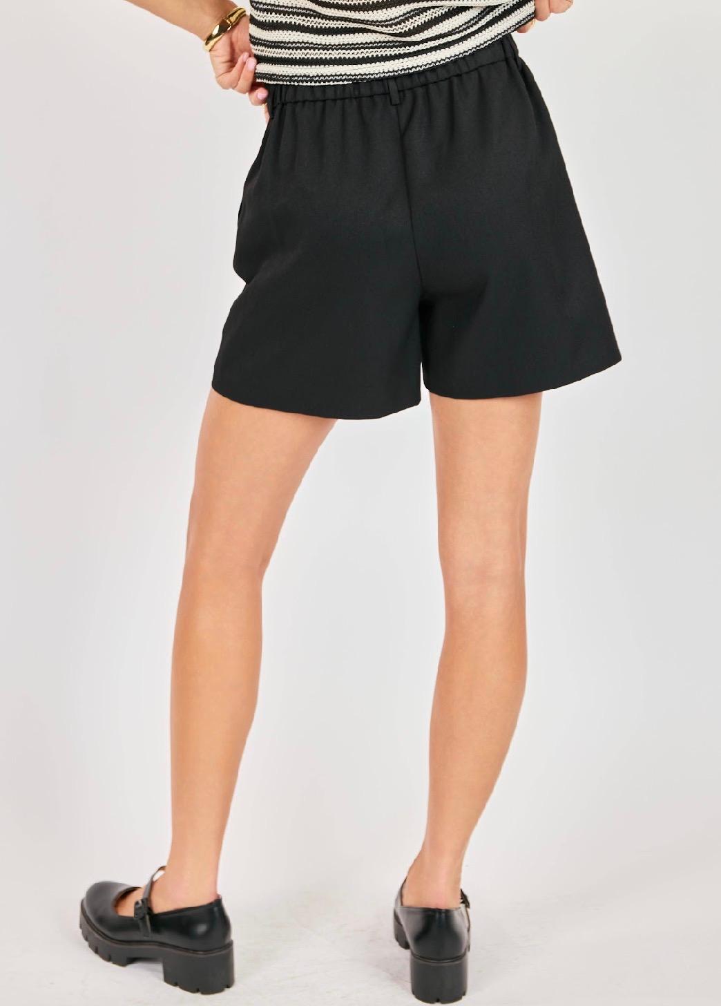 These elevated tailored shorts bring structure and sophistication to warm-weather dressing. Designed with a clean front waistband, elastic stretch on back of waistband, subtle pleating, and a relaxed leg opening, they offer a flattering fit that feels both polished and comfortable. Functional side pockets add everyday ease, while the tailored silhouette keeps the look refined. Pair them with the matching vest for a sleek set moment or mix with knits and blouses for an effortless work-to-weekend outfit.
