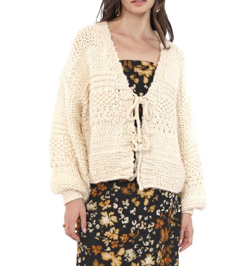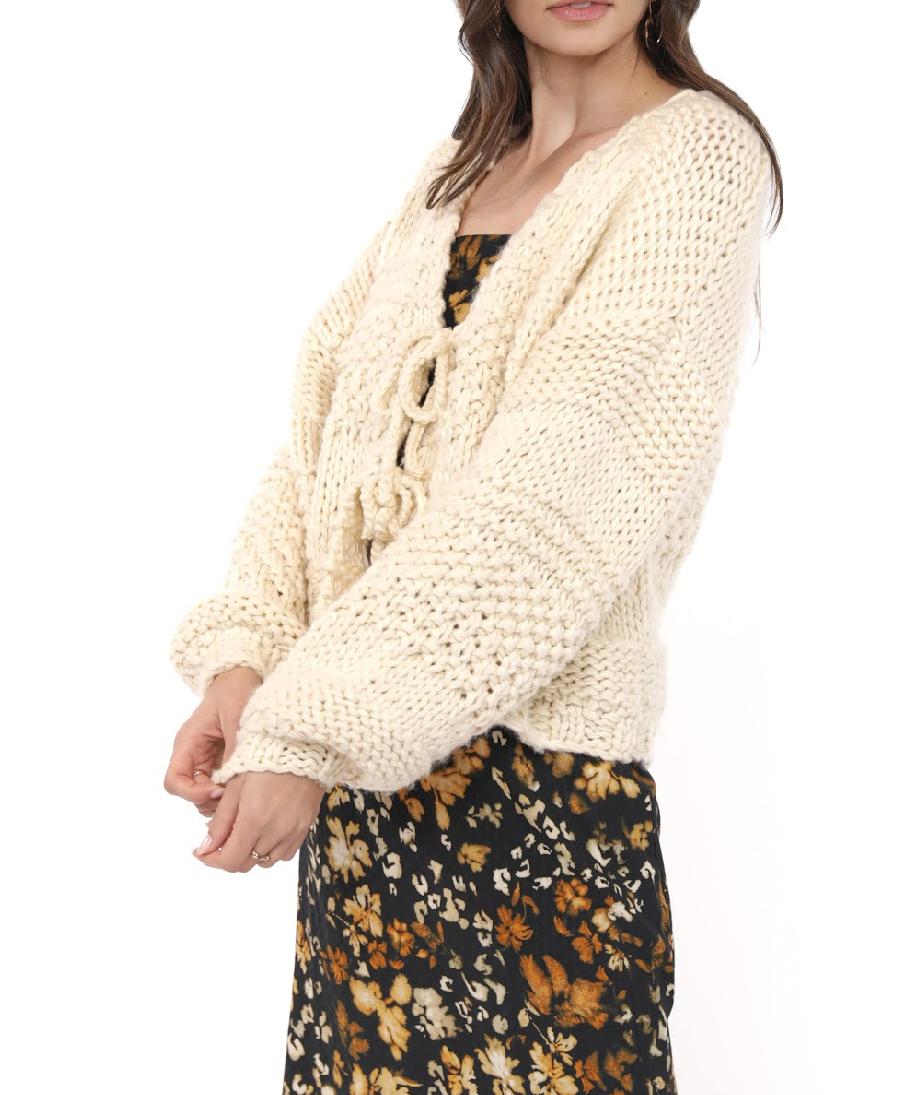 Ivory Tie Front Hand Knit Cardigan