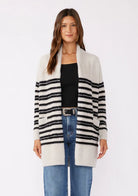Why snuggle up with a blanket this Fall when you can have this cozy cardigan instead? A classic fuzzy cardigan, detailed with mirrored stripes, features an open front and handy patch pockets—ideal for your on-the-go lifestyle. Whether you’re at home, running errands or working from your favorite coffee shop, this plush cardigan ensures you step out in both comfort and style.