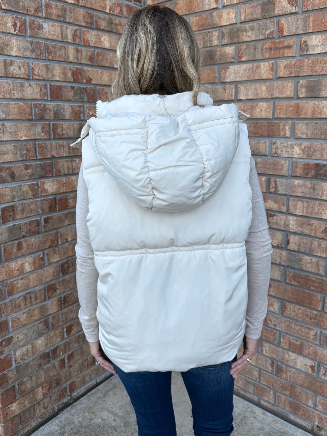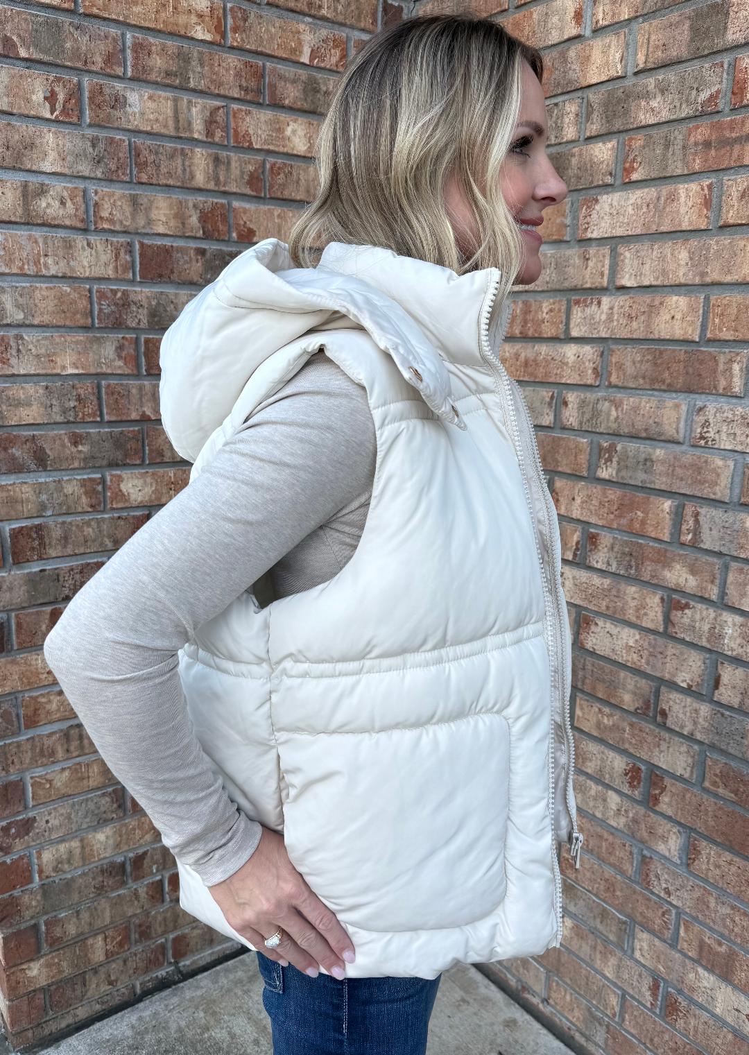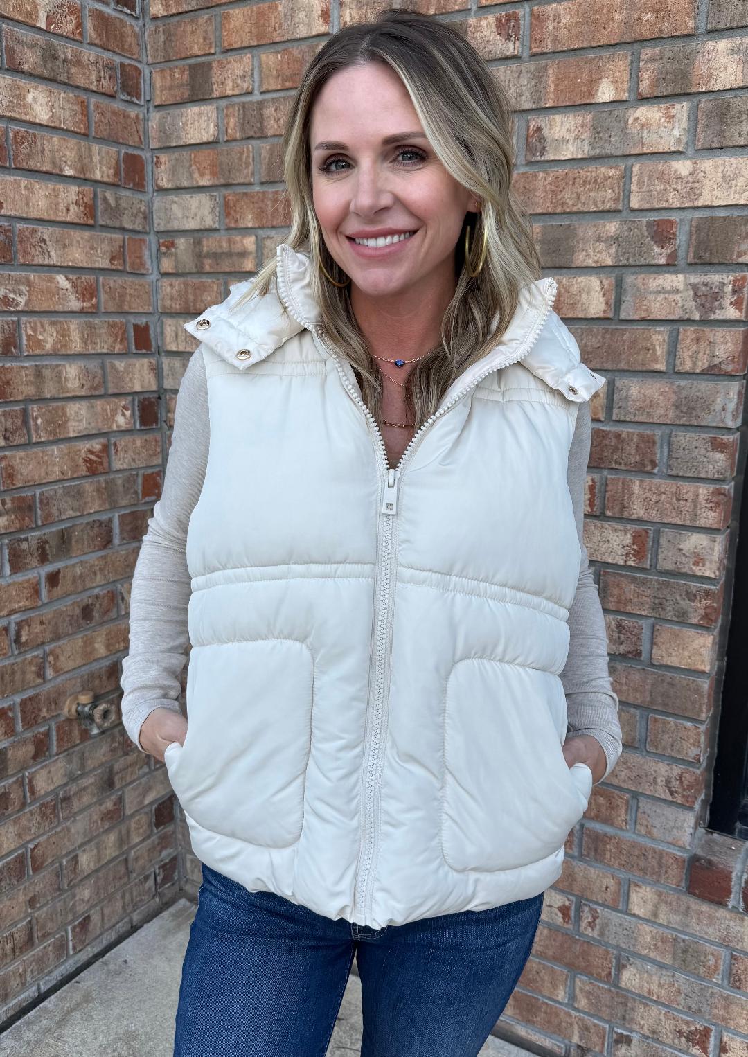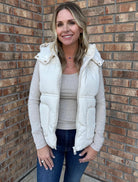 The Travis Cream Puffer Vest is your cozy-chic go-to for layering this season. Designed in a soft cream hue, it features a quilted puffer style with a full front zipper closure and side pockets for function and warmth. The hood adds versatility, while the lightweight yet insulating fill keeps you comfortable without the bulk. Perfect for pairing over sweaters or long sleeves, this vest is the ideal transitional piece for crisp mornings, weekend errands, or casual outings.