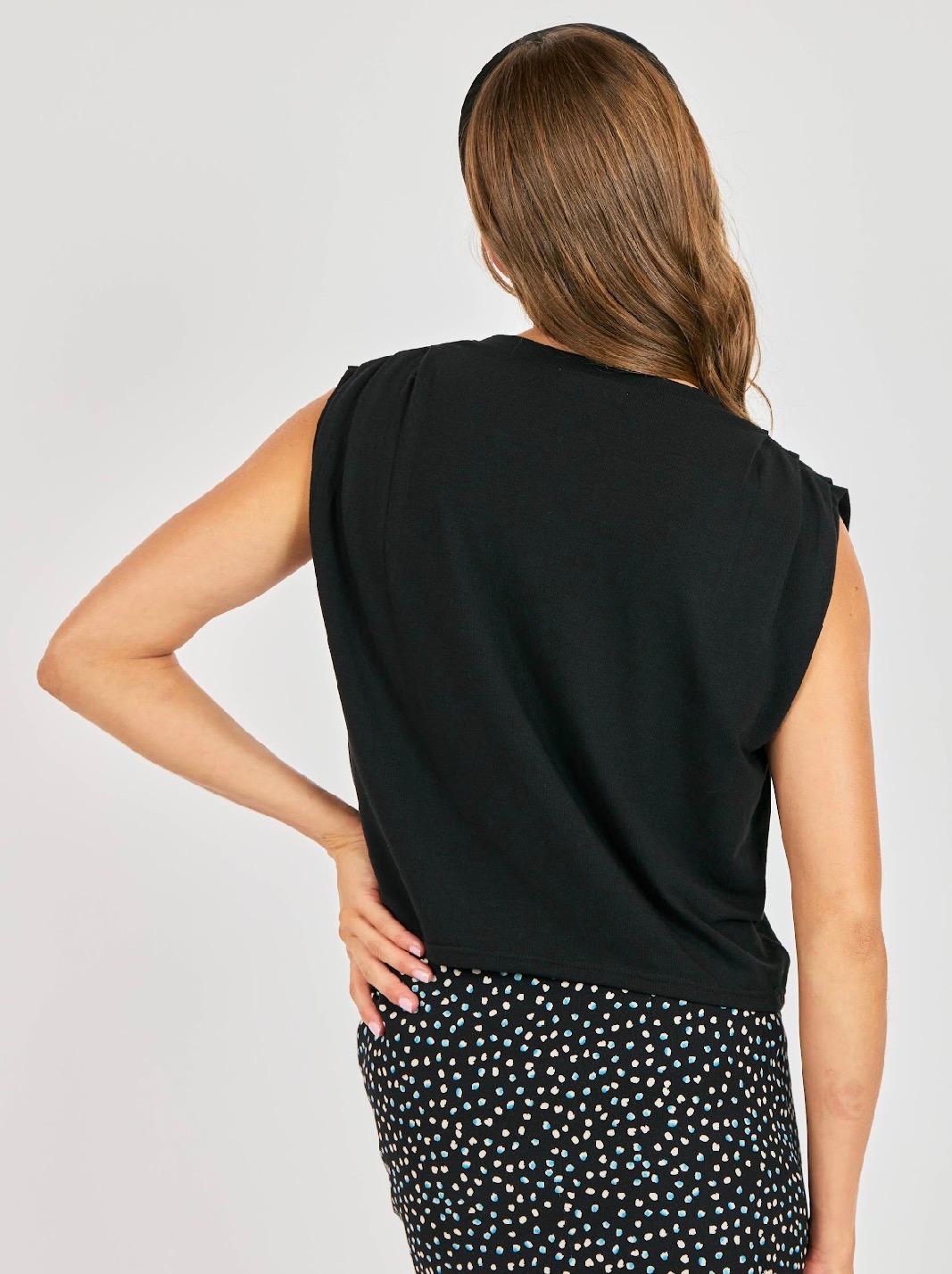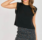 This super soft, stretchy tee is the ultimate elevated basic your closet needs. Crafted in a smooth, comfortable knit with plenty of give, it drapes beautifully while still holding its shape. The classic crew neckline keeps it timeless, while subtle shirred shoulder detailing adds a modern, structured touch that elevates it beyond a standard tank. The slightly cropped length makes it perfect for pairing with high-rise skirts, trousers, or denim, creating a flattering silhouette without feeling too fitted. Effortless, versatile, and endlessly wearable, this is the kind of polished staple you’ll reach for on repeat — easy enough for everyday, refined enough to dress up.